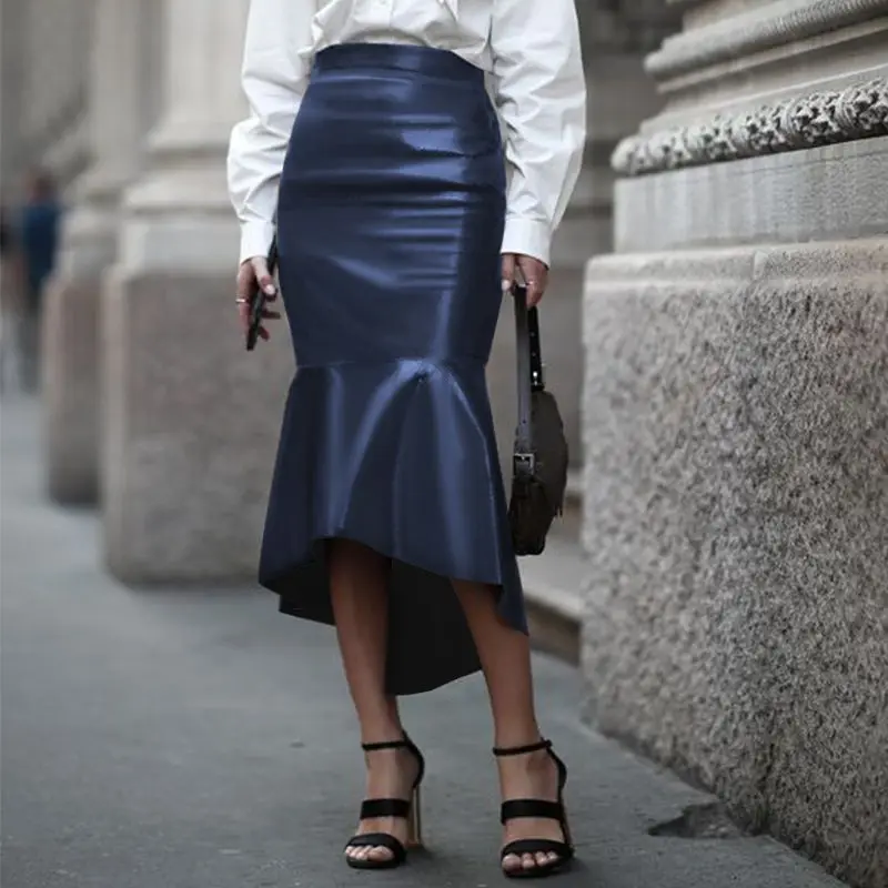 Элегантная Офисная Женская юбка, юбка длинная с высокой талией, асимметричная юбка для вечерние