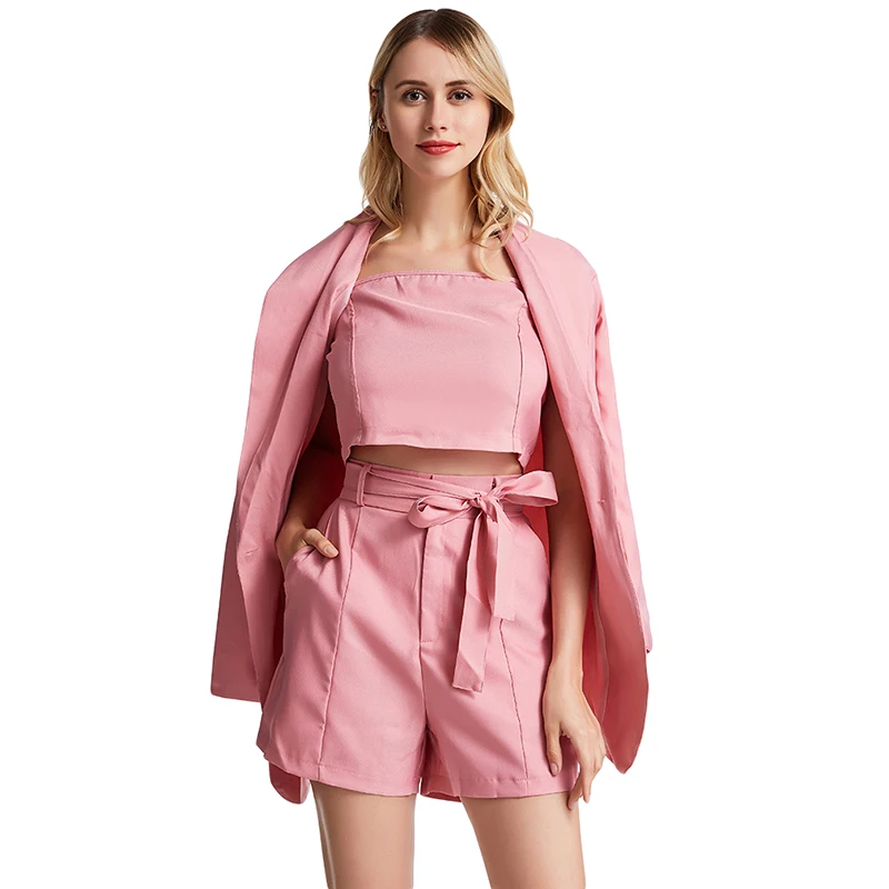 Осенний комплект из трех предметов, женский сексуальный офисный комплект из 3 предметов с вырезом лодочкой, топ и шорты, Элегантные повседневные Костюмы с длинным рукавом, блейзер