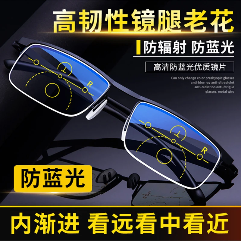 Титановый сплав мужские прогрессивные мульти-фокус анти-синие очки ...