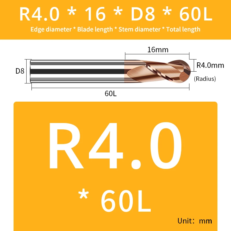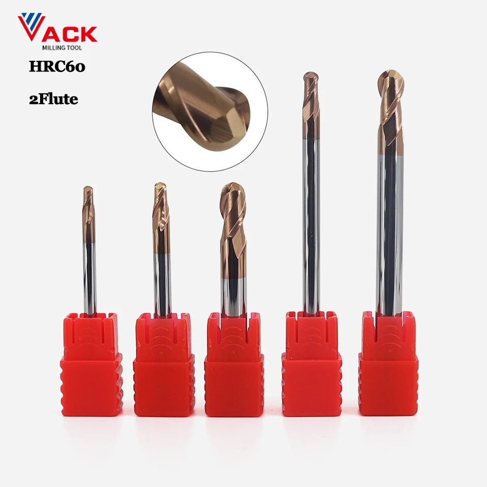 Концевая фреза VACK HRC60, карбидная сферическая насадка из вольфрамовой стали, для фрезерных станков с ЧПУ, металлических фрез, 2 режущих инструмента