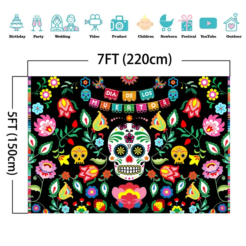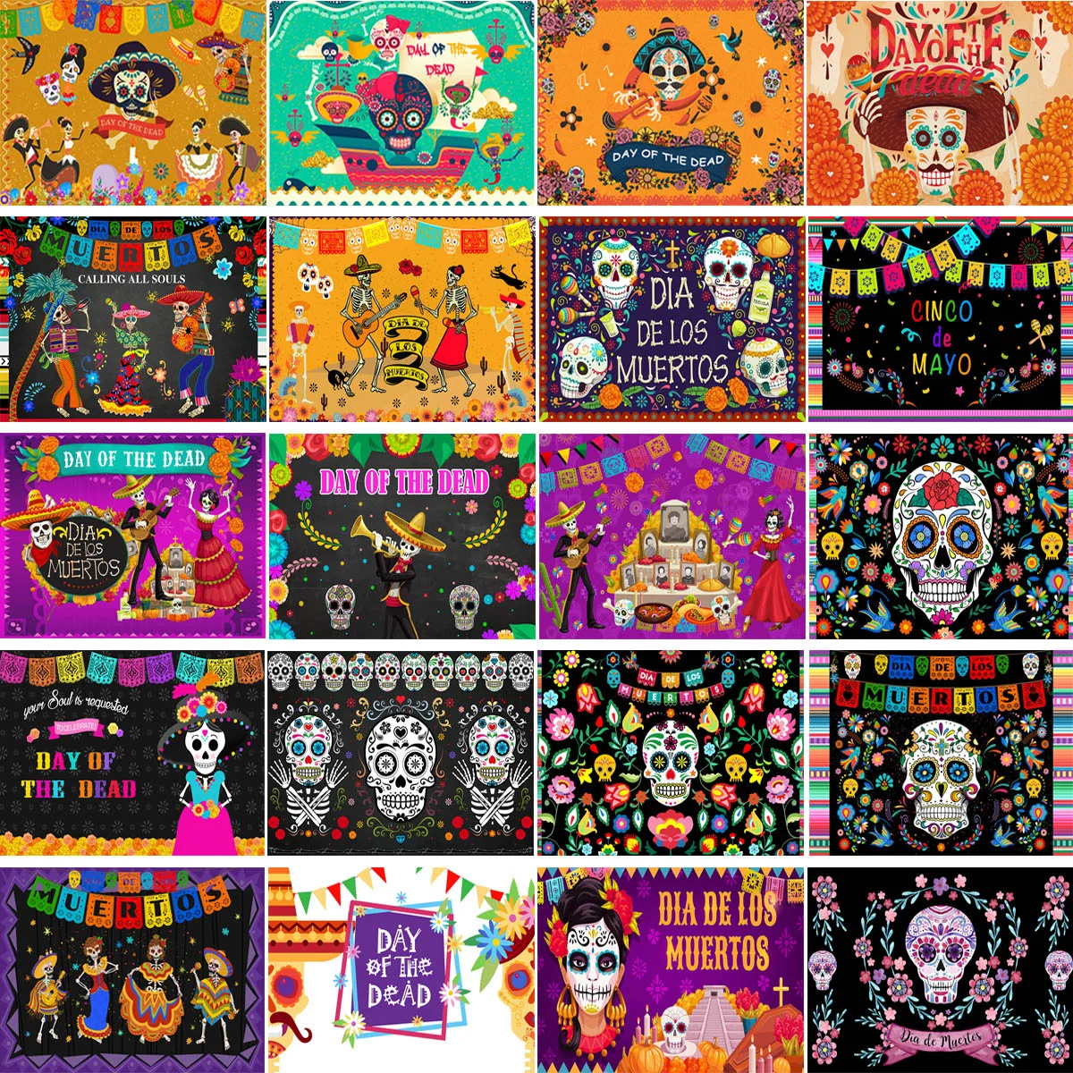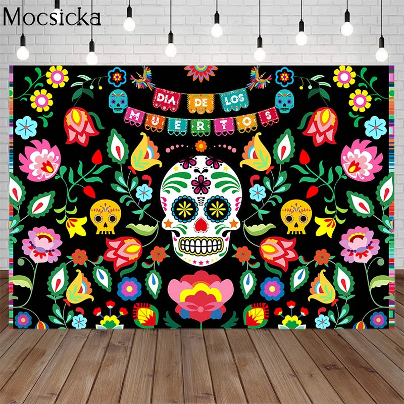 Mocsicka День мертвых фон для фотосъемки с изображением Мексиканская Muertos череп фон платье со шнуровкой вечерние Fiesta вечерние Декор баннер реквизит