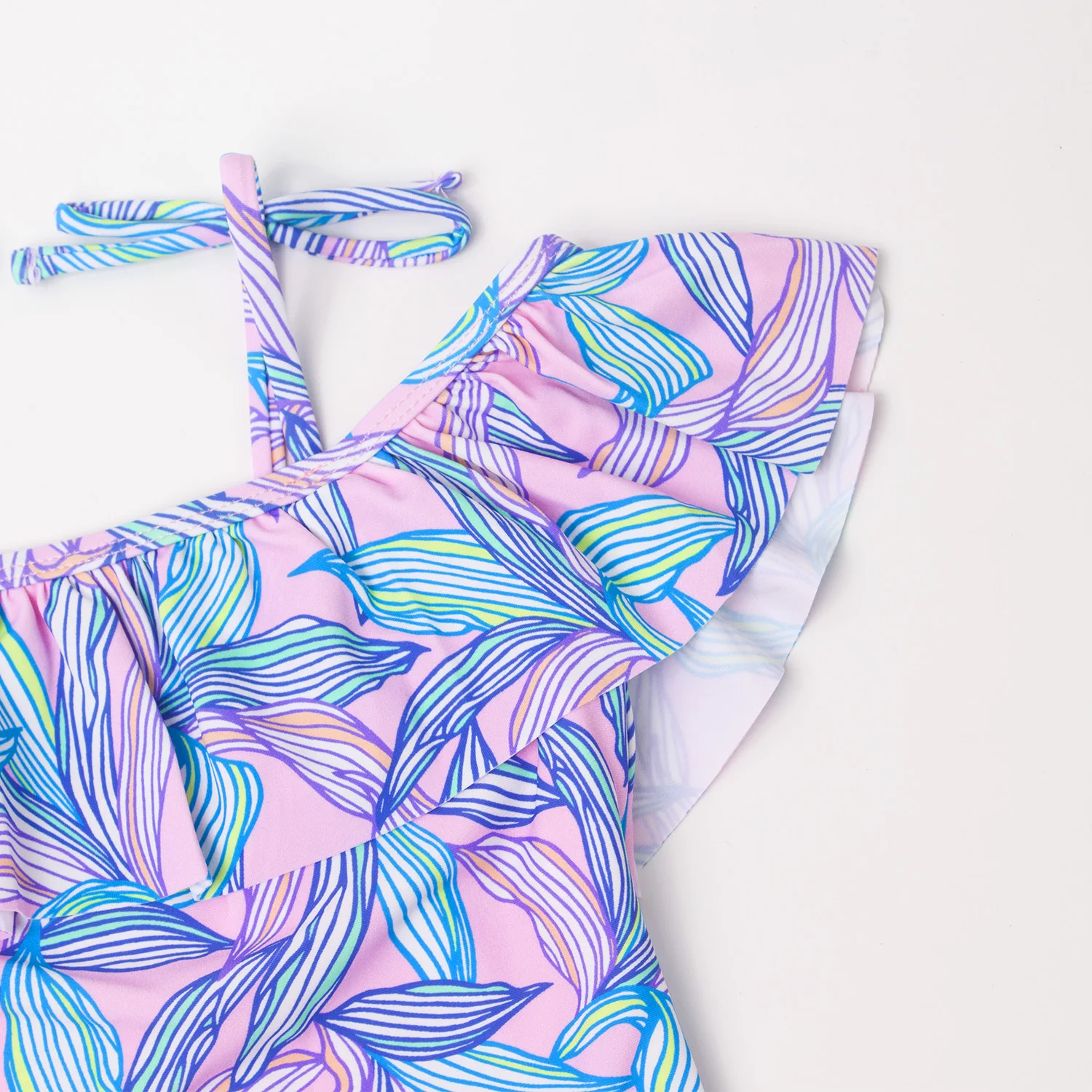Цельнокроеный Купальник для девочек с принтом листьев 2021, летний ...
