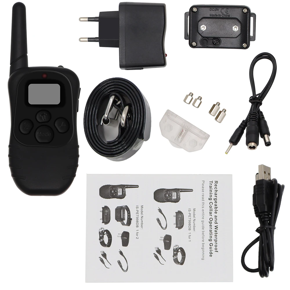 998DB дистанционный электрический ошейник для собак 300 м водонепроницаемый перезаряжаемый тренажер электронный ошейник с 3 режимами обучения статическая Вибрация звуковой сигнал