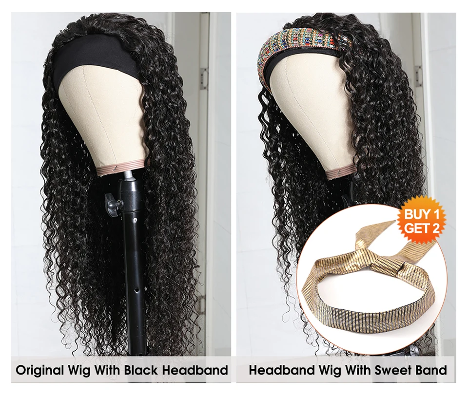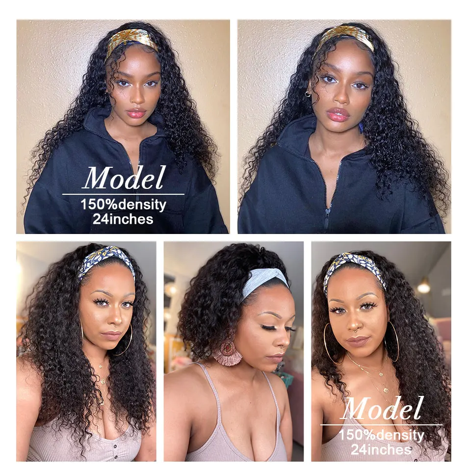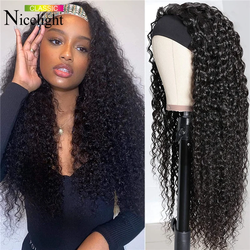 Nicelight Индийский Джерри вьющиеся лента для волос парики из натуральных волос на кружевной 12-26 "человеческих волос манекен для шарфа парика натуральные густые завитые волосы парик с повязкой на голову