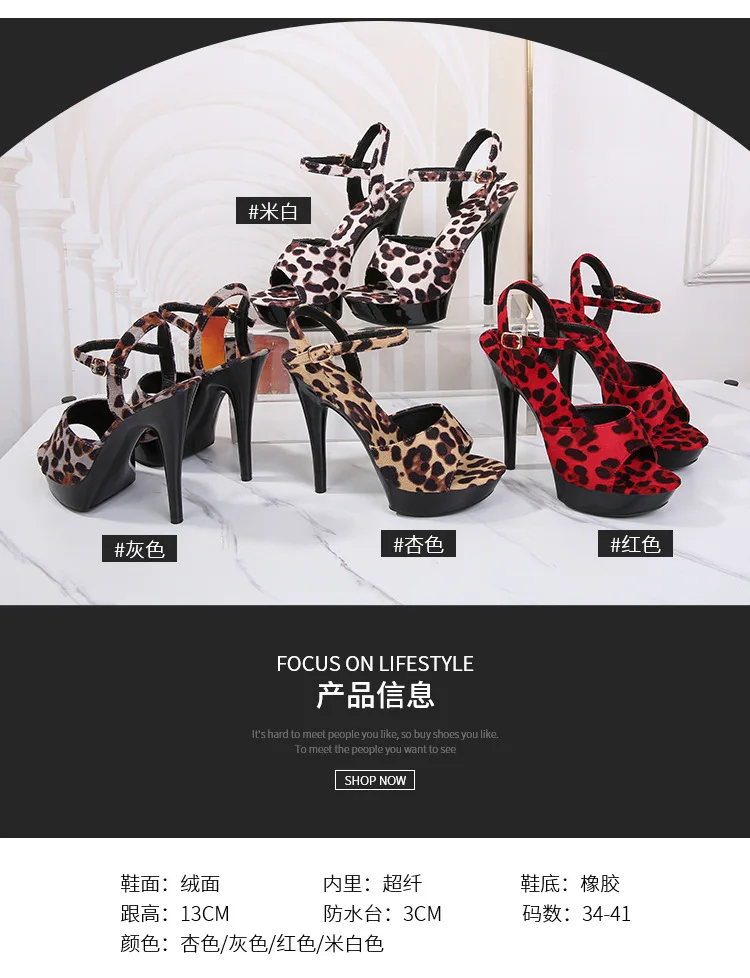 Женские босоножки shuбоумиао на каблуке, сандалии с ремешком и пряжкой, на тонком каблуке, с леопардовым принтом, с водяной формой, на платформе, большие размеры