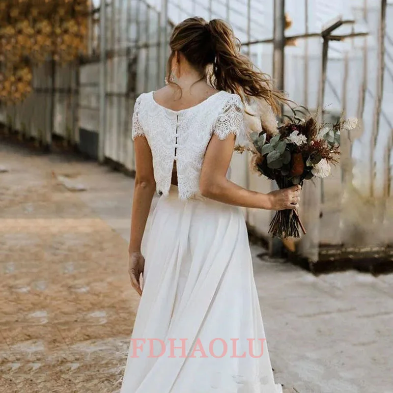Свадебное платье FDHAOLU FU65 из двух частей, кружевное свадебное платье с коротким рукавом, украшенное драгоценным воротником, свадебное пляжное платье