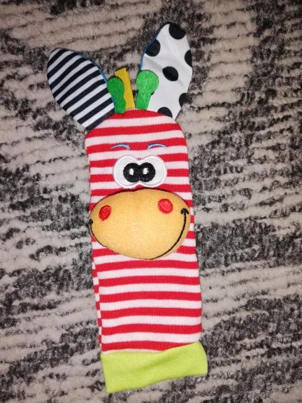 Товар шёл почти месяц. Всё как в описании. С продавцом не общались. Брала за 121 руб. Читайте внимательно описание. Цена за один носок!! Ушки шуршат. Носик с погремушкой внутри. Качество не очень. Внутри швы не обработаны. Не для ежедневной носки.