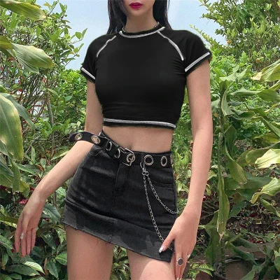 Женская летняя обувь Y2K футболки футболка с коротким рукавом с круглым вырезом Slim Fit Повседневный пуловер Короткие футболки топы нуз магазин