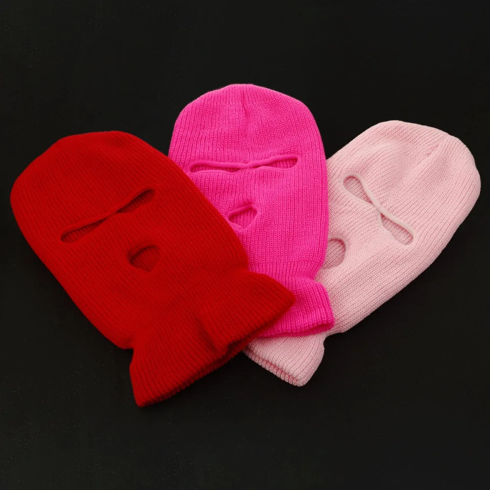 Маска, закрывающая все лицо, вязаная Балаклава с тремя отверстиями,...