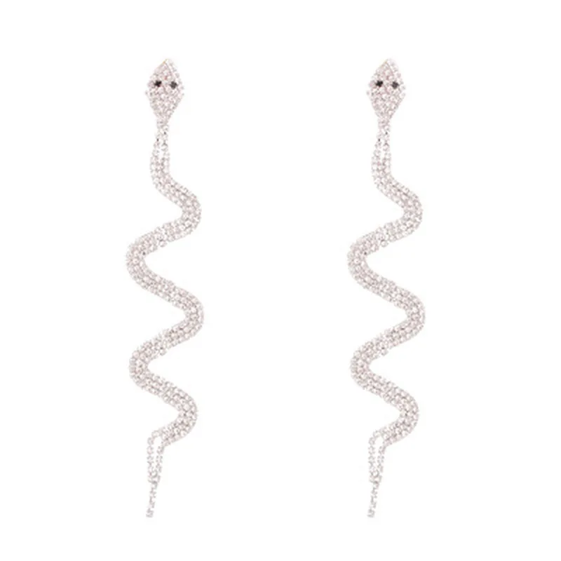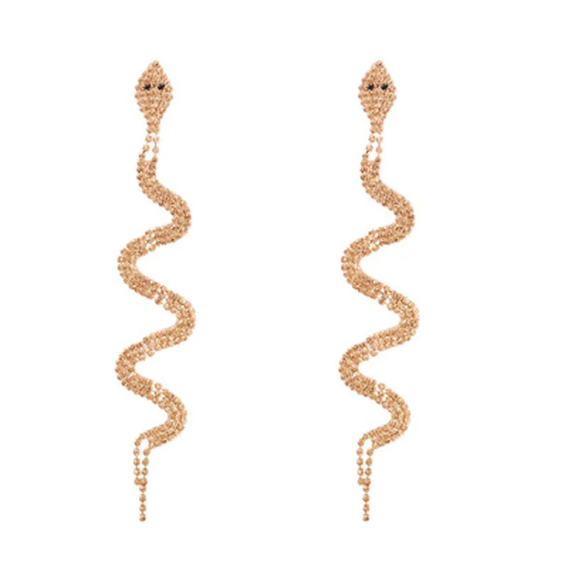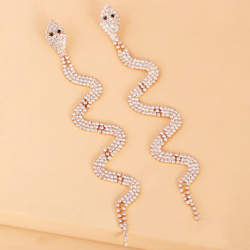 Минар личность шикарные Стразы твист серьги в виде змеи для Для женщин Золотой Цвет сплав витой Гольфы с изображением животных; Длинные висячие серьги