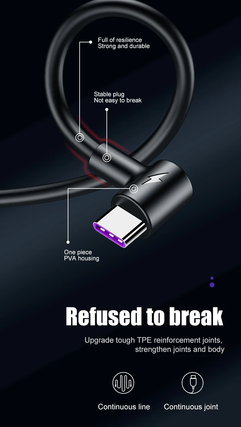 Кабель Micro USB Type-C, 5 А, 1 м, 2 м, 3 м, 3 А, для быстрой зарядки телефонов Huawei Mate 40, P40, QC3.0
