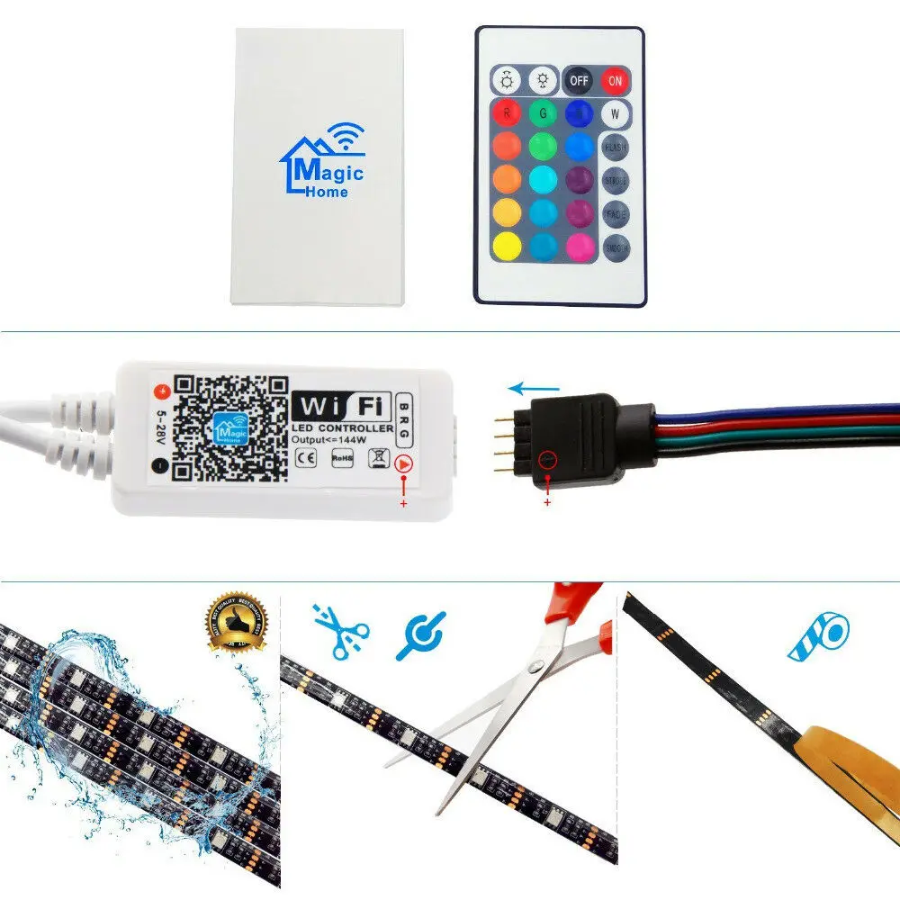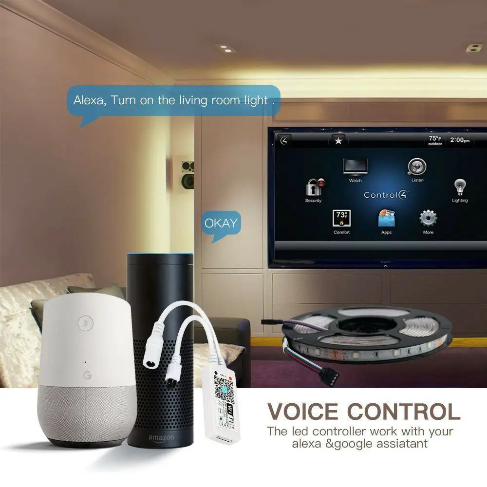 Особенности:Работа с Amazon Alexa / Google Assistant. Вы будете использовать счет для управления любым набором светодиодных лент. Если вы хотите включить/выключить светильник Alexa, измените цвет, настройте тусклый/яркий.Вы можете использовать приложение для управления освещением в любое время и в любом месте с помощью планшета или смартфона. Вы можете управлять светодиодный полоской с помощью изменения цвета, таймера, группового управления и функции «сделай сам».Интеллектуальное планирование + Интеллектуальный таймер + комбинированный набор + без ступицы, только одно касание может улучшить энергосберегающий эффект жизни, реализовать любой переключатель различных заданных сцен, DIY Наслаждайтесь собственной индивидуальной атмосферой освещения, больше в данный момент.Более 16 миллионов цветов могут быть свободно переключены (цветовая температура, цвет, яркость, переключатель), и это легко создать романтику.Гибкая Водонепроницаемая полоса, просто снимите клей с крана на задней части светодиодный ленты, вы можете вставить его в любом месте, где вы хотите украсить, например, телевизор, рабочий стол. Мягкое освещение может быть выполнено по всей комнате, идеально подходит для домашней среды.Спецификация:Длина: 0,5/1/2/3/4/5mУгол луча: 120 °Водонепроницаемый: IP65 или не водонепроницаемый IP30Светодиодный светильник: 30 светодиодныйВходное напряжение: 5 ВПосылка включает в себя:Светильник-1 шт.1 х Wifi контроллер1 x USB DC провод