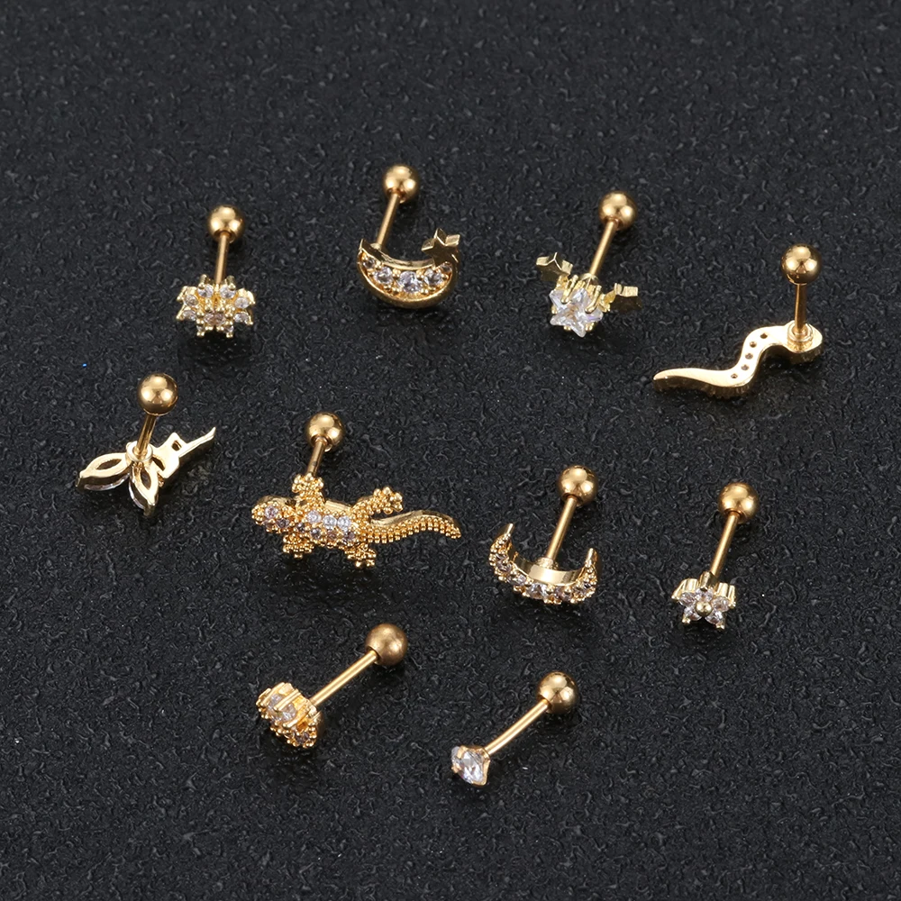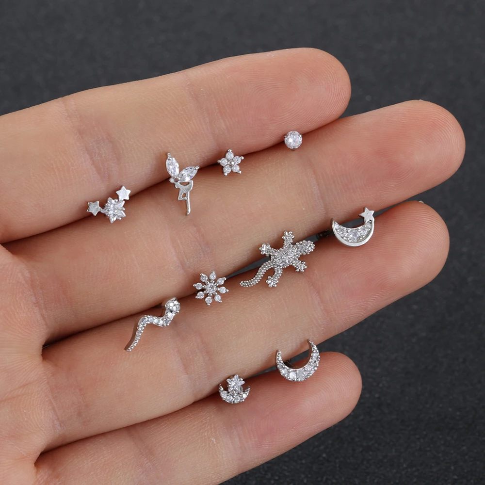 1 предмет, лидер продаж Нержавеющаясталь из нержавеющей стали, серьги-гвоздики Завинчивающаяся задняя крышка, серьги Cz Змея Ящерица Геккон Цветок Луна спирали раковины для пирсинга, серьги, ювелирное изделие
