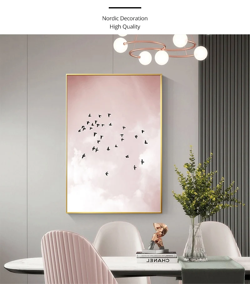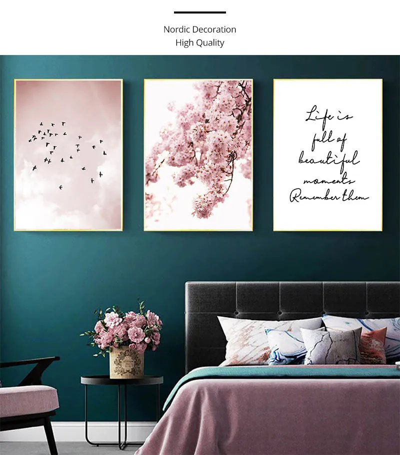 Картина с изображением розовых цветов вишни в скандинавском стиле, настенное художественное полотно с принтом птиц, плакат в скандинавском стиле, декор для гостиной