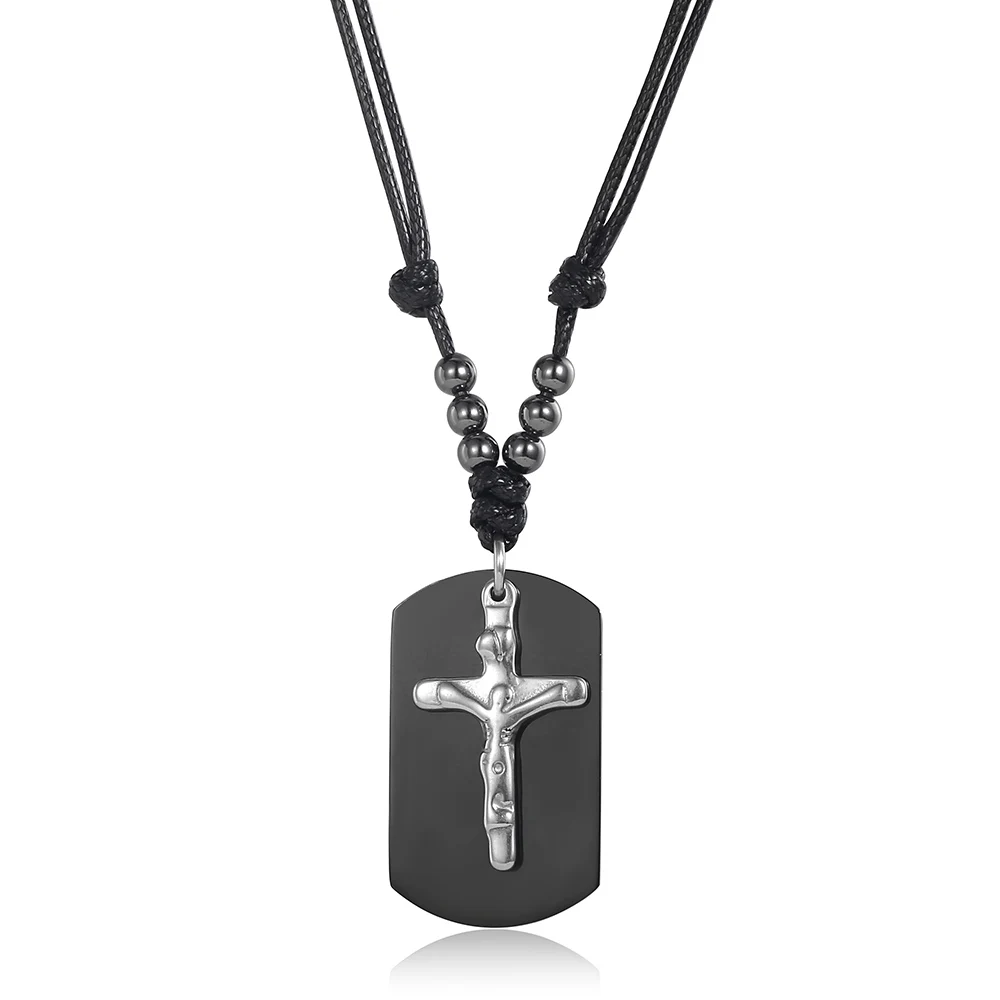 2 мм черная кожа Крест Собака бирка ID Подвески ожерелье для мужчин мальчиков длинные цепи гравировка имя Дата регулируемые подарки DDN232