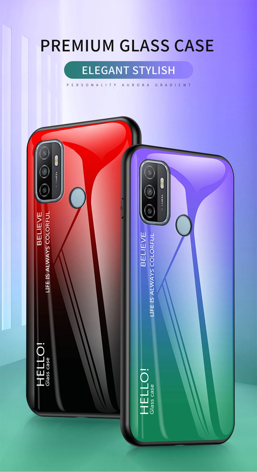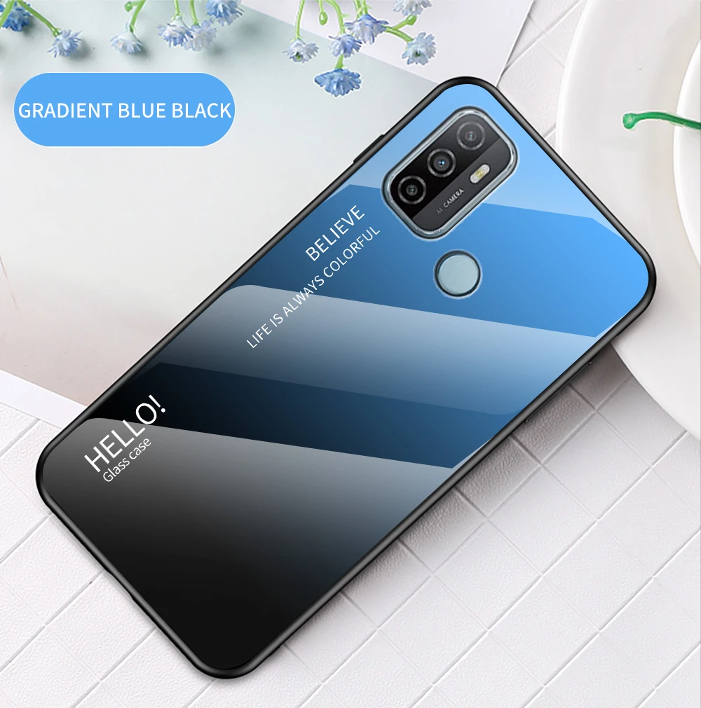 Градиент закаленное Стекло силиконовый чехол-накладка из мягкого ТПУ противоударный бампер мобильный телефон чехол для OPPO A53 чехол Крышка