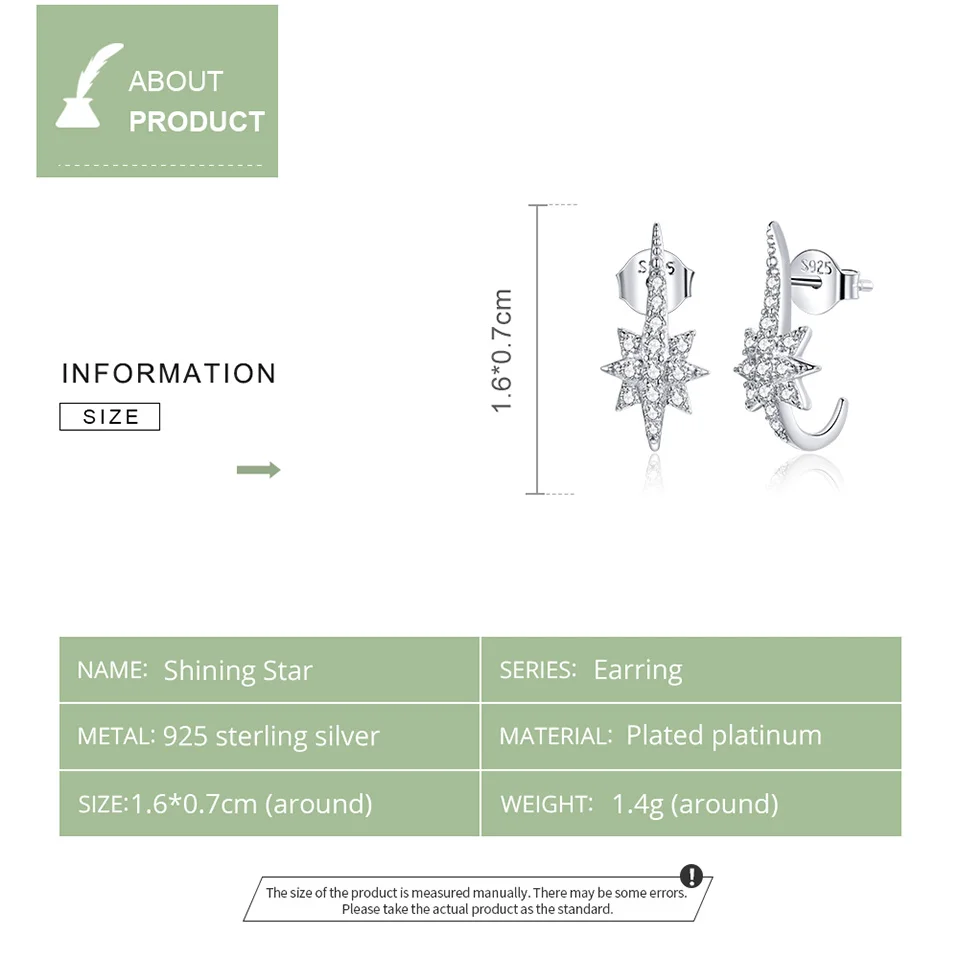 Размер: 1,6*0,7 смS925 + Платина с покрытием + фианит CZФорма звезды украшена цирконом, который ярко сияет в ваших ушах.