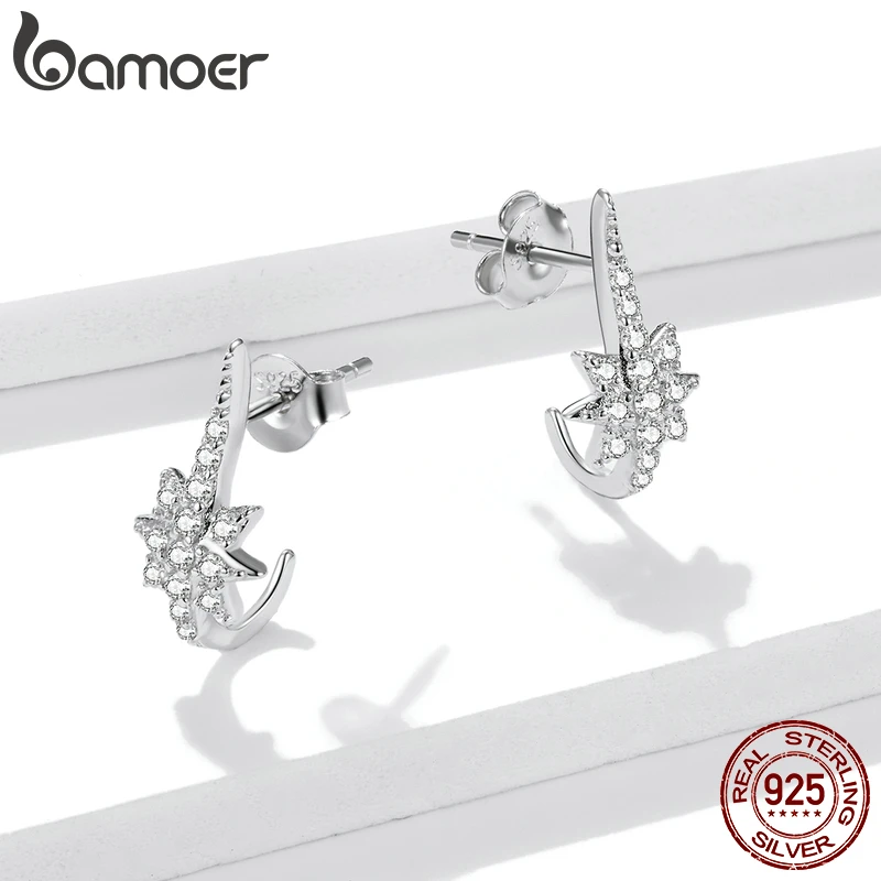 BISAER серьги Аутентичные 925 пробы серебро простой с блестящими зв...