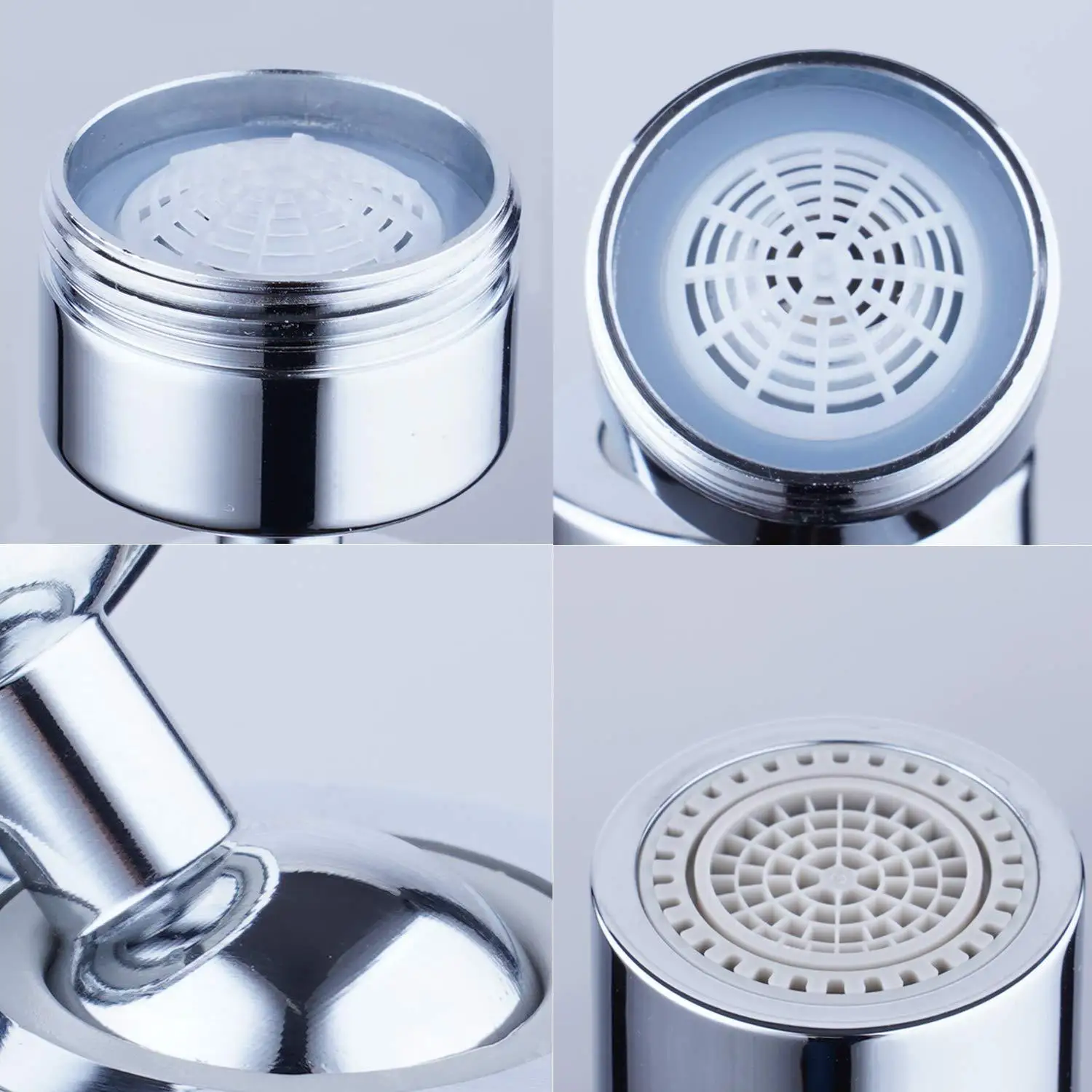 -Два потока воды: мягкий пузырьковый поток и сильный спрей (с нежным поворотом, два режима могут быть произвольно преобразованы для удовлетворения различных потребностей в воде).-Экономия воды: 50 - 80 pct (по сравнению с смесителем без барботера).-Фильтр барботера также может фильтровать большую часть осадка и примесей, а внутренняя сетка может фильтровать примеси крупных частиц.-Предотвращает протекание воды, и воздух смешивается с водой хорошо, вода чувствует себя мягкой, улучшенный импульс воды, очистка более удобна.-Тонкий, встроенный фильтр грязи захватывает песок и частицы грязи.-Чтобы очистить, просто снимите фильтр и снимите краску под водой.-Гуманизированный дизайн, прост в установке и использовании, нет необходимости заменять оригинальный кран, нет необходимости менять другие среды.-Вращение на 360 градусов, вода может легко покрывать всю раковину, никогда не беспокойтесь о чистке раковины в холодную зиму.
