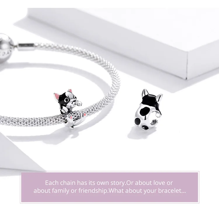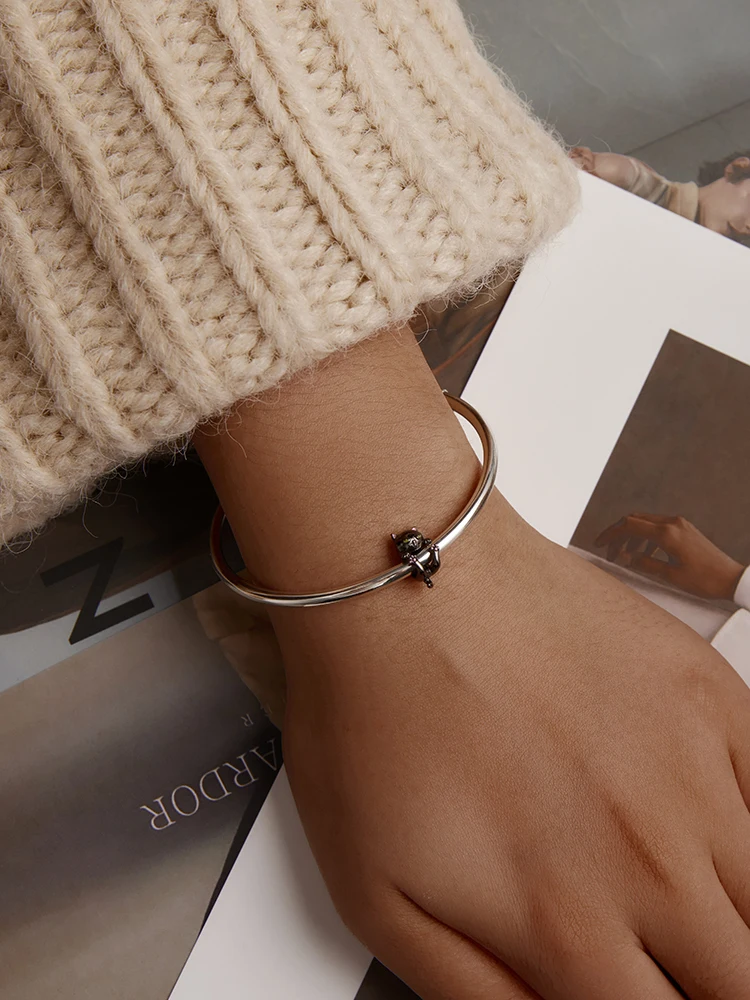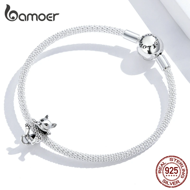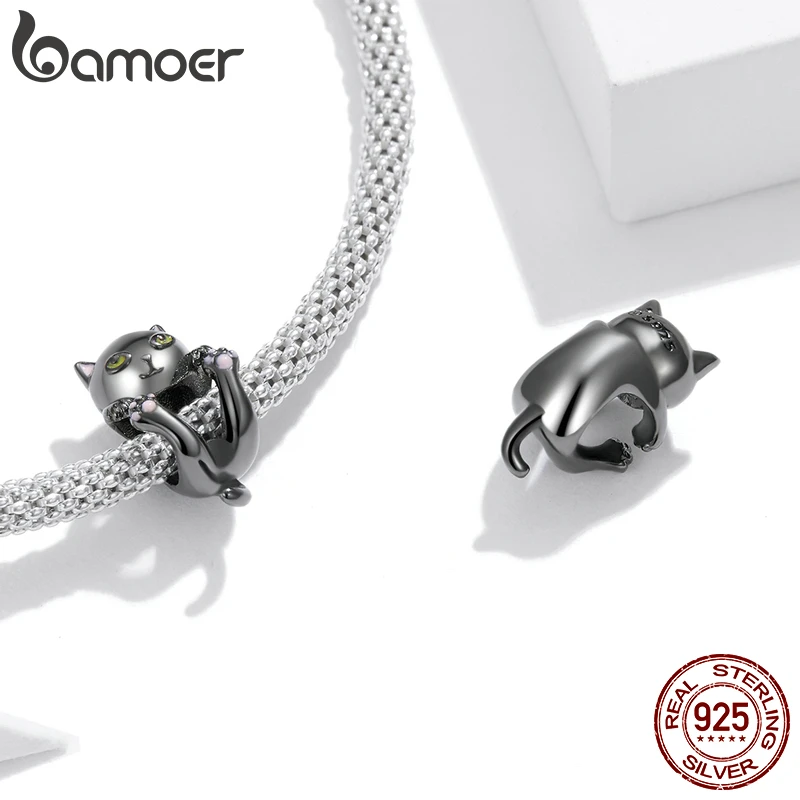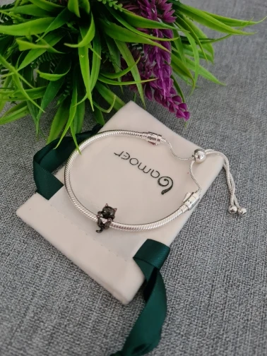 Браслет женский из серебра 925 пробы, с изображением черного кота