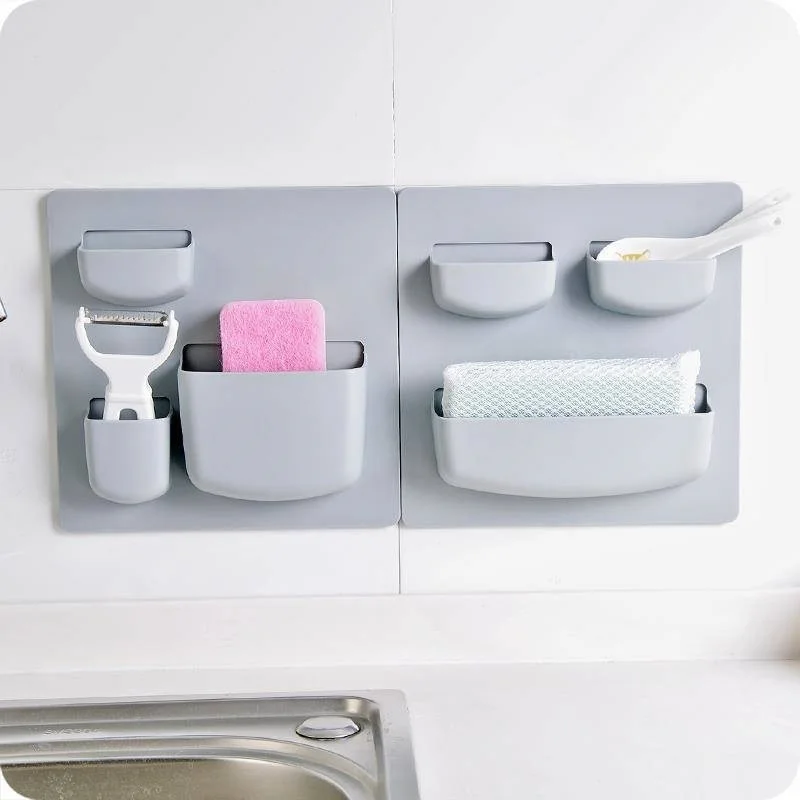 Эта полка элегантного цвета и изготовлена из материала PP. Поставляется с фиксированным двусторонним скотчем и может крепиться к холодильнику, ванной и гостиной.