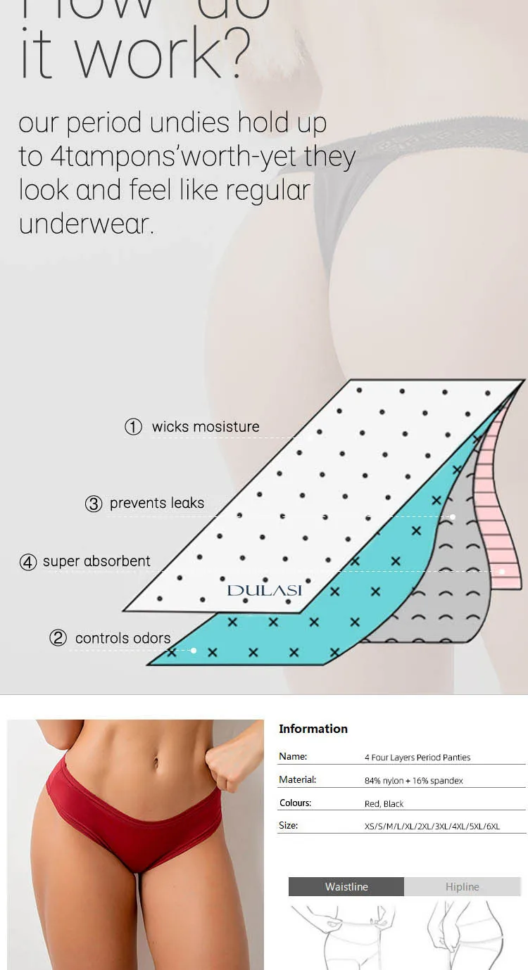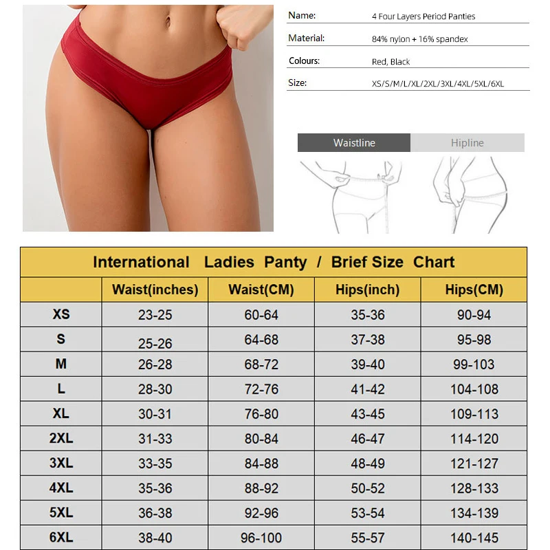 Трусики для месячных, красные менструальные трусики, четырехслойные...