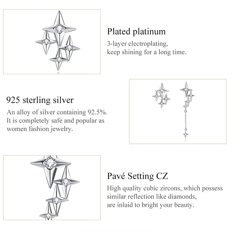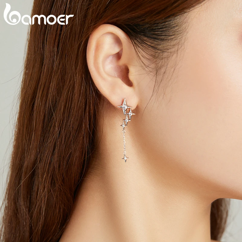 Женские серьги в виде звезд bamoer, гипоаллергенные серьги из настоящего серебра 925 пробы, BSE461