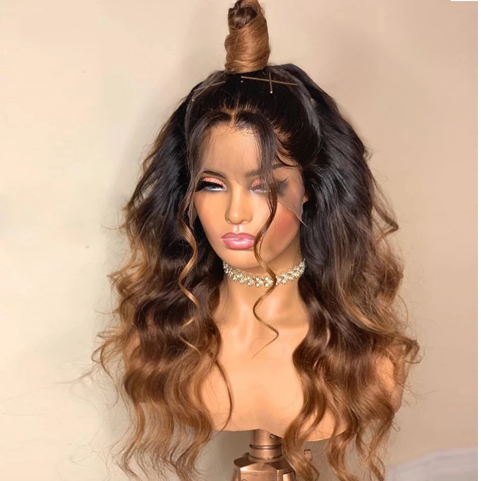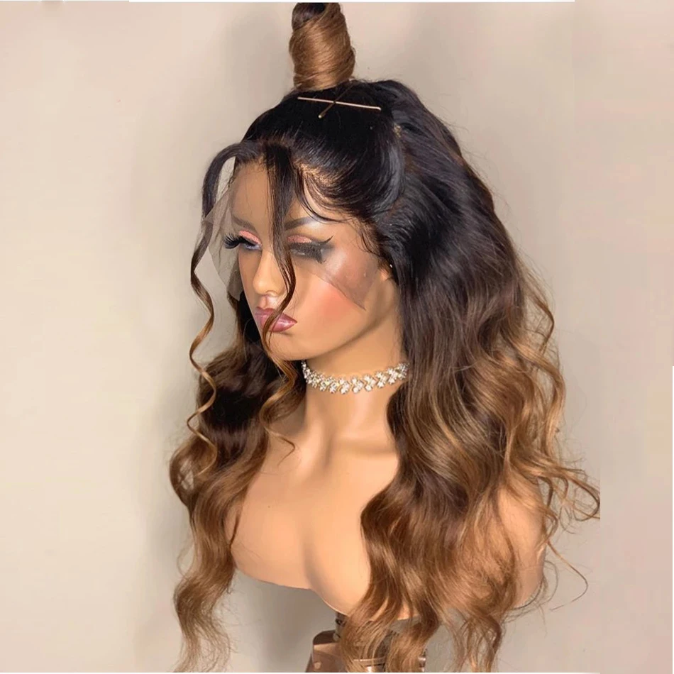 360, волнистые человеческие волосы с эффектом омбре, кружевные передние парики для черных женщин, плотность 180, 3 тона, цвета: коричневый, светлый, индийский, неповрежденные волосы, парики