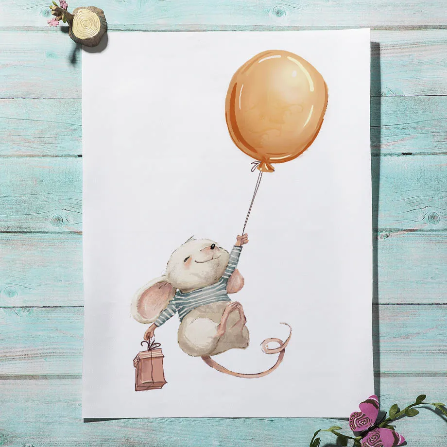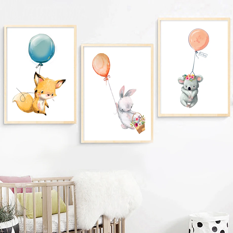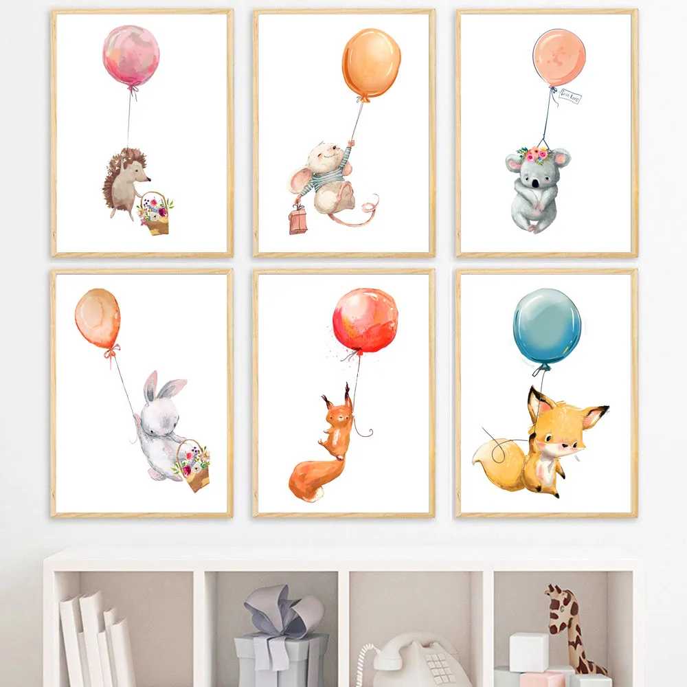 Кролик, лиса, белка, коала, мышь, воздушный шар, Настенная картина для детской комнаты, живопись на холсте, Постер в скандинавском стиле, настенные картины, декор для детской комнаты