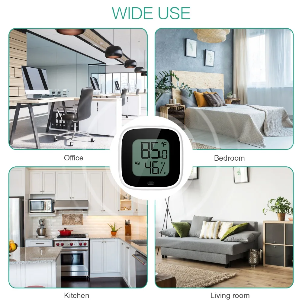 【Accurate】 со встроенным MEMS сенсором, обеспечивает высокую точность мониторинга. Диапазон температур: -20-60 ℃(-4-140 ℉) Диапазон влажности: 0-99% RH. Температуру с точностью до ± 0,5 ℃(± 1 ℉), в то время как влажности составляет ± 3% относительной влажности.