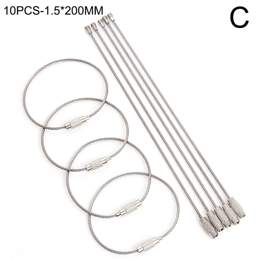 10 шт. простой Нержавеющаясталь брелок для ключей для Для мужчин Для женщин Для мужчин проволочного каната устройство блокировки 100150200 мм, логотипы марок машин, брелок для ключей, автомобильные аксессуары, брелок для автомобиля аксессуары