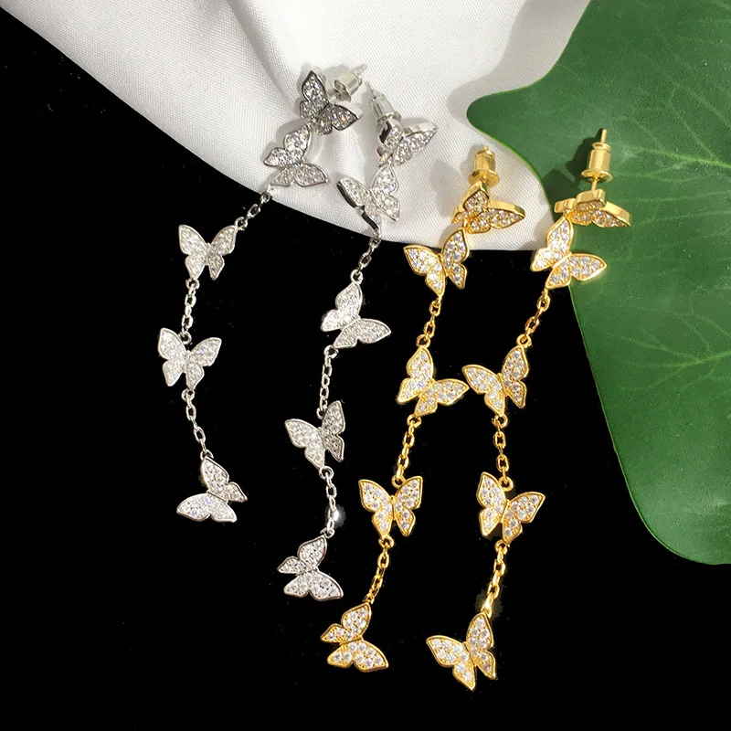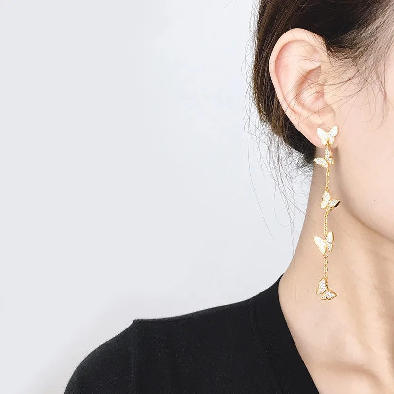 Высококачественные длинные висячие серьги золотого цвета с бабочкой и кисточками для женщин, модные украшения (DJ1478)
