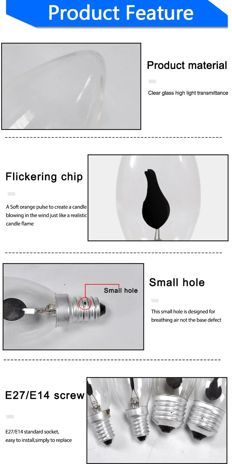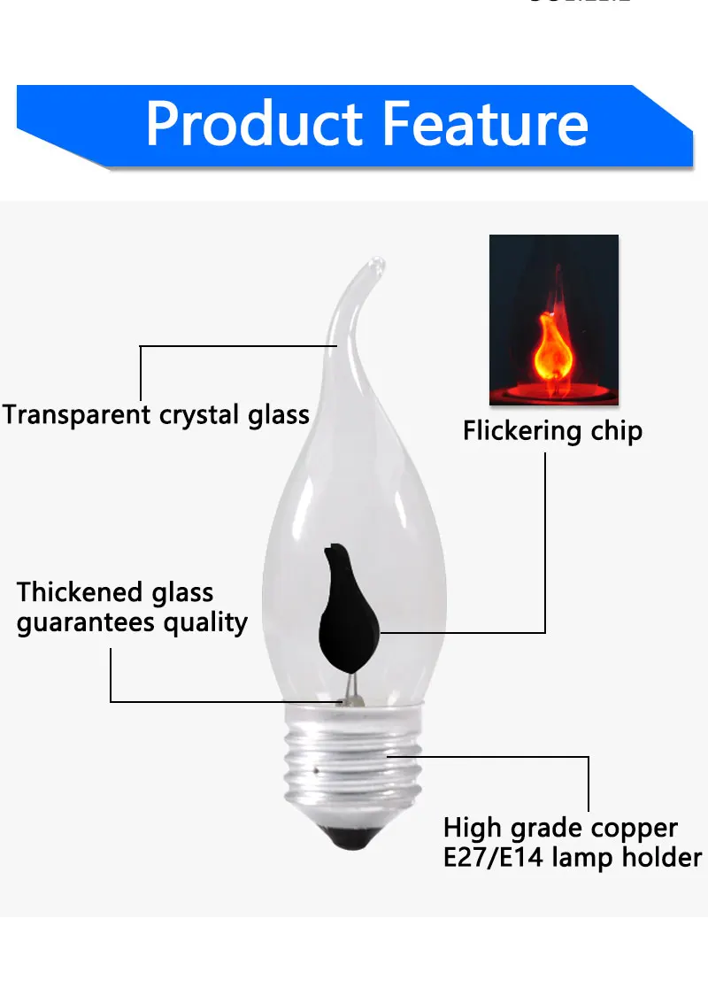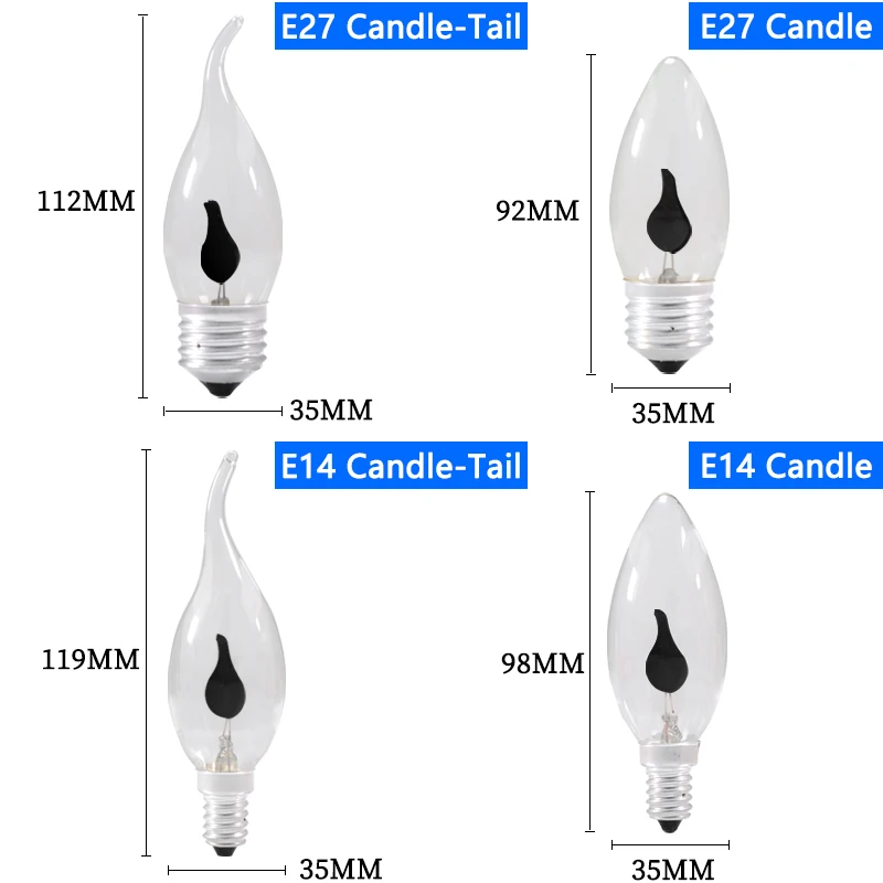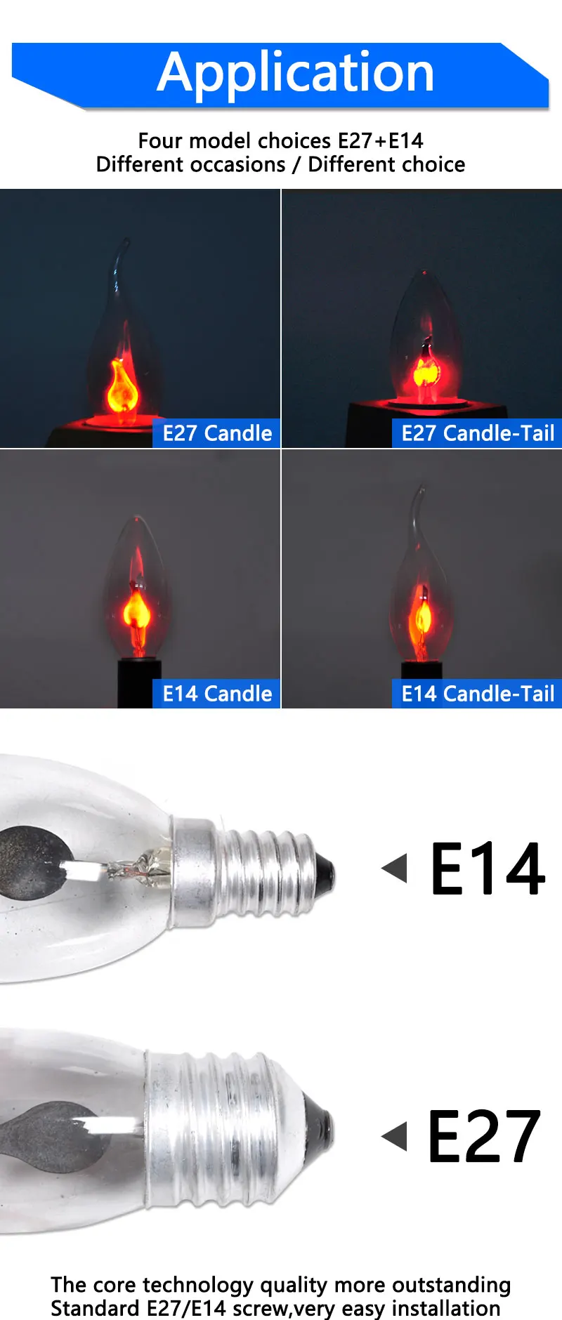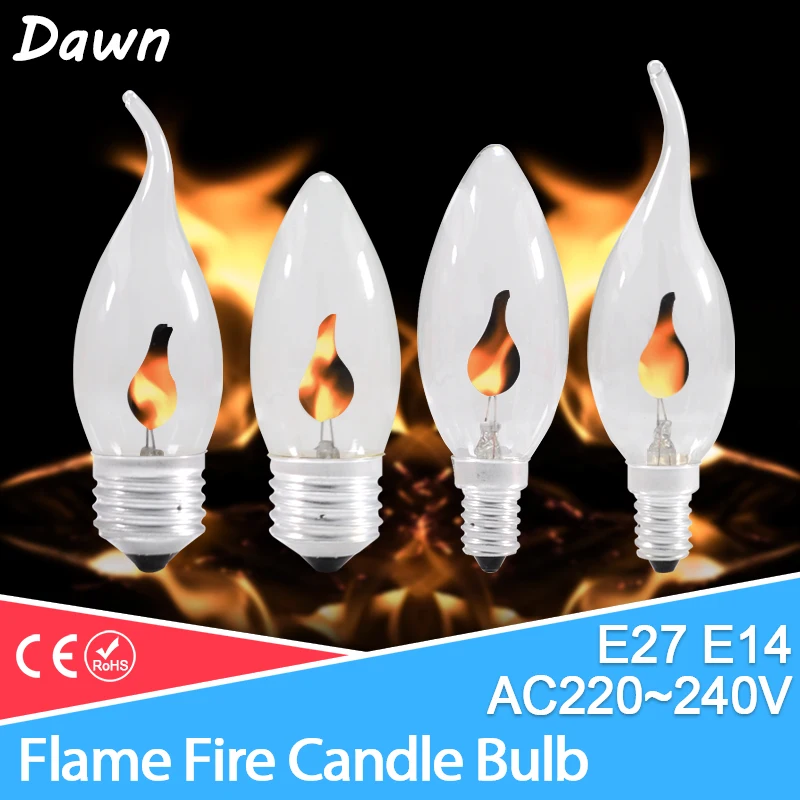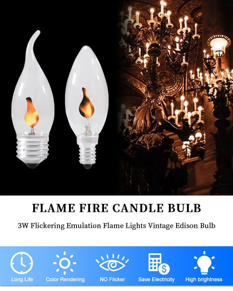 Светодиодная лампа E14 E27 Edison led лампачки со пламени светодиодные лампы в форме свечи светильник огонь светильник ing Винтаж 3 Вт AC220V 240V Хвост Ретро Декор энергосберегающая лампа