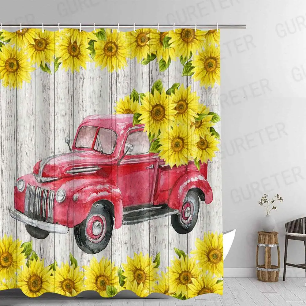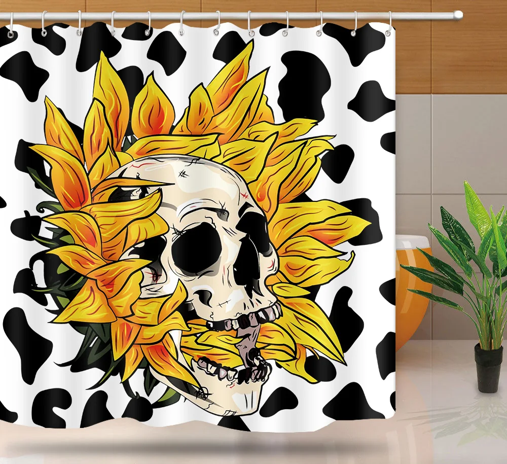 Водонепроницаемая Автомобильная занавеска для душа, занавеска для ванной комнаты с принтом подсолнухов, бабочек, коров, цвет черныйбелый