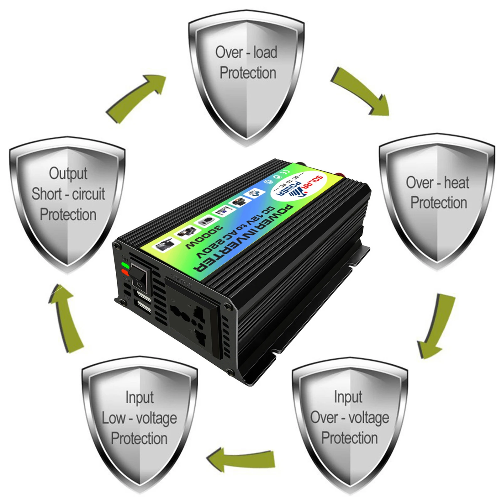 3000W DC 12V к AC 220V двойной USB конвертер зарядное устройство адаптер автомобильный инвертор Характеристики: Встроенный бесшумный вентилятор охлаждения помогает уменьшить тепло и предотвращает короткое замыкание. Безопасная конструкция зарядки обеспечивает защиту от перегрева, подзарядки под и перенапряжения, короткого замыкания. Уникальные вентиляционные отверстия и умный дизайн вентилятора делают наш инвертор мощностью 300 Вт легче рассеивать тепло. Наименование товара: автомобильный инвертор Материал: пластик, металл Количество: 1 шт. Тип: 12 В постоянного тока в 220 В переменного тока Диапазон входного напряжения: 10-15 в Выходное напряжение: 220 В Пиковая мощность: 3000 Вт Фактическая мощность: 300 Вт Особенности: прочный, быстрая зарядка, защита от грязи, удобный Размеры: 16,5 см x 11,2 см x 5,6 см/6,5 "x 4,41" x 2,2 "(прибл.) Примечания: Из-за светильник и настройке экрана разница фактический цвет товара может незначительно отличаться цвет товара может быть s светильник ly отличается из-за характеристик монитора компьютера. Возможны незначительные отклонения в размерах из-за различных измерений вручную. Посылка включает в себя: 1 х Автомобильный инвертор 2 x батарейных зажима 1 х разъем прикуривателя 1 x Руководство пользователя