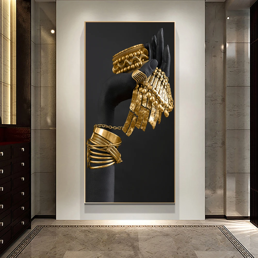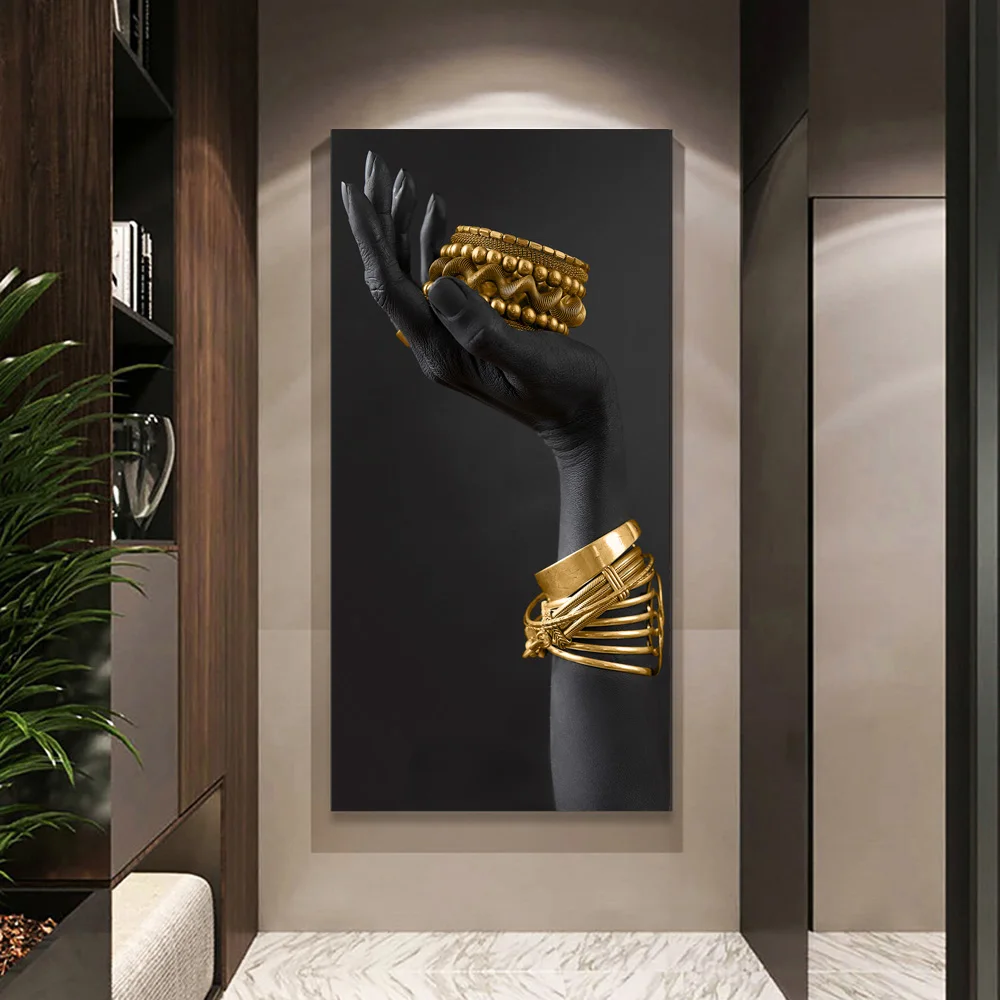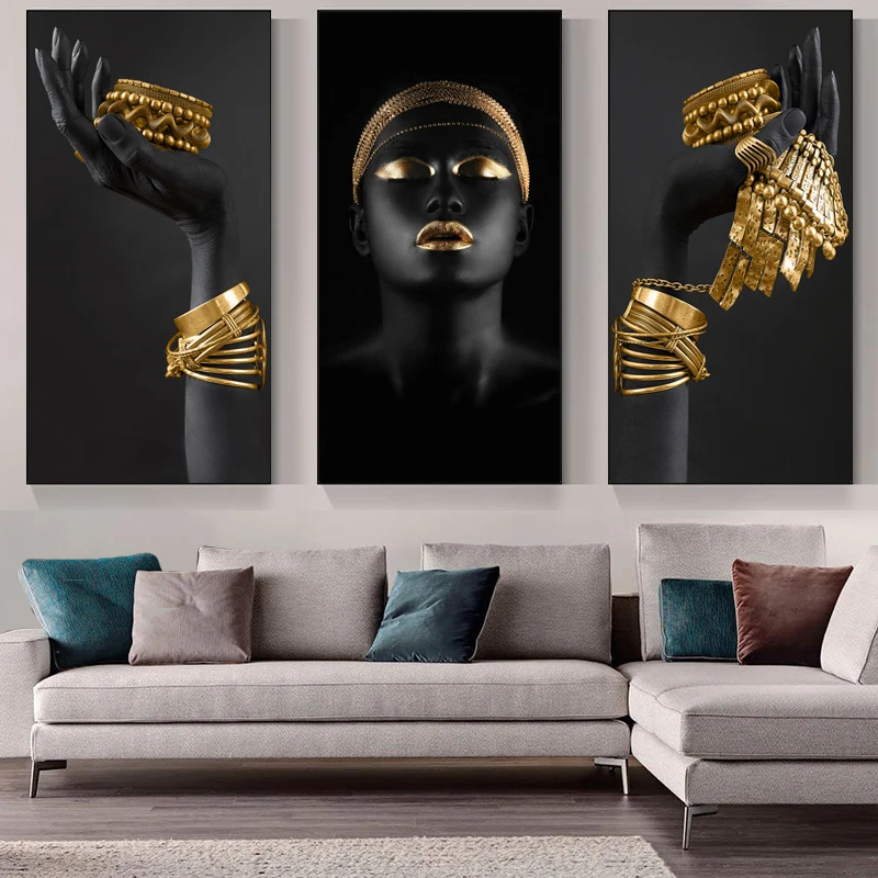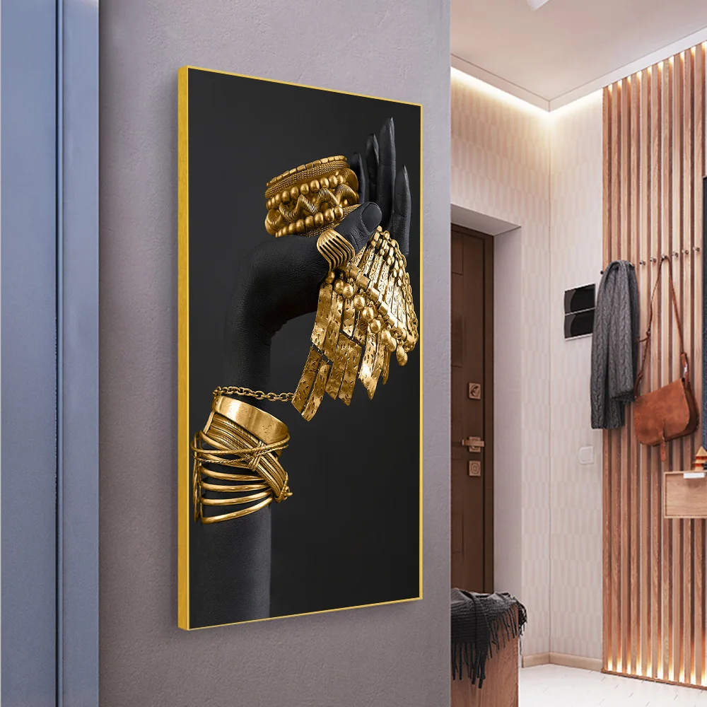 Золотой браслет искусство холст печать картина африканская черная кожа Женщины Современная Гостиная Настенная картина украшение дома плакат