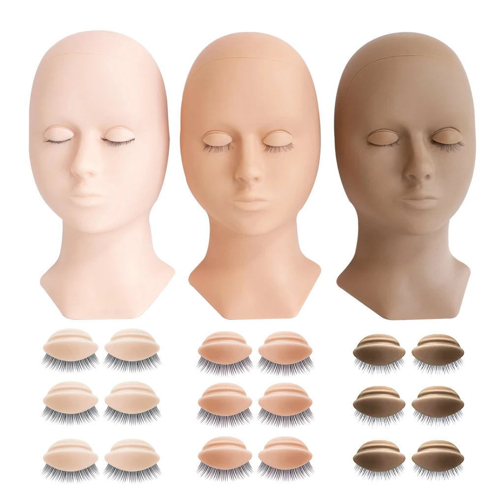 Тренировочная голова-манекен для наращивания ресниц, 3 цвета, силиконовая сменная модель век, инструмент для наращивания ресниц