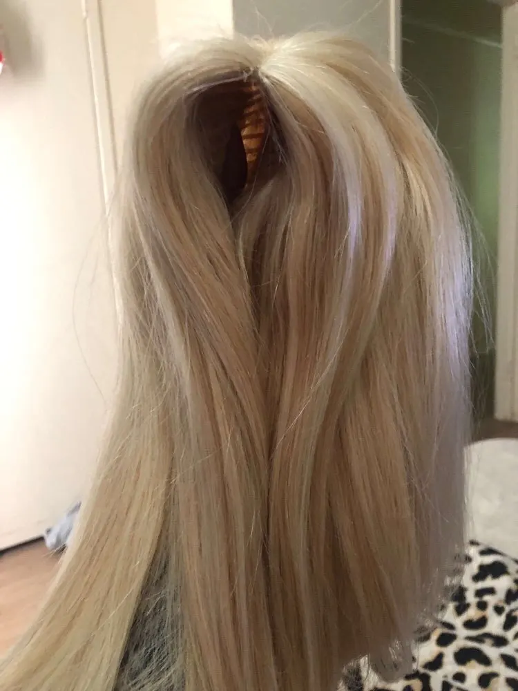Отличный парик, волосы мягкие, цвет без рыжыны, но темнее чем на фото продавца. Доставка очень быстрая. По бокам не видно пришитые трессы , если конечно волосы не загибать. Советую к покупке. Настоящий светло русый цвет.
