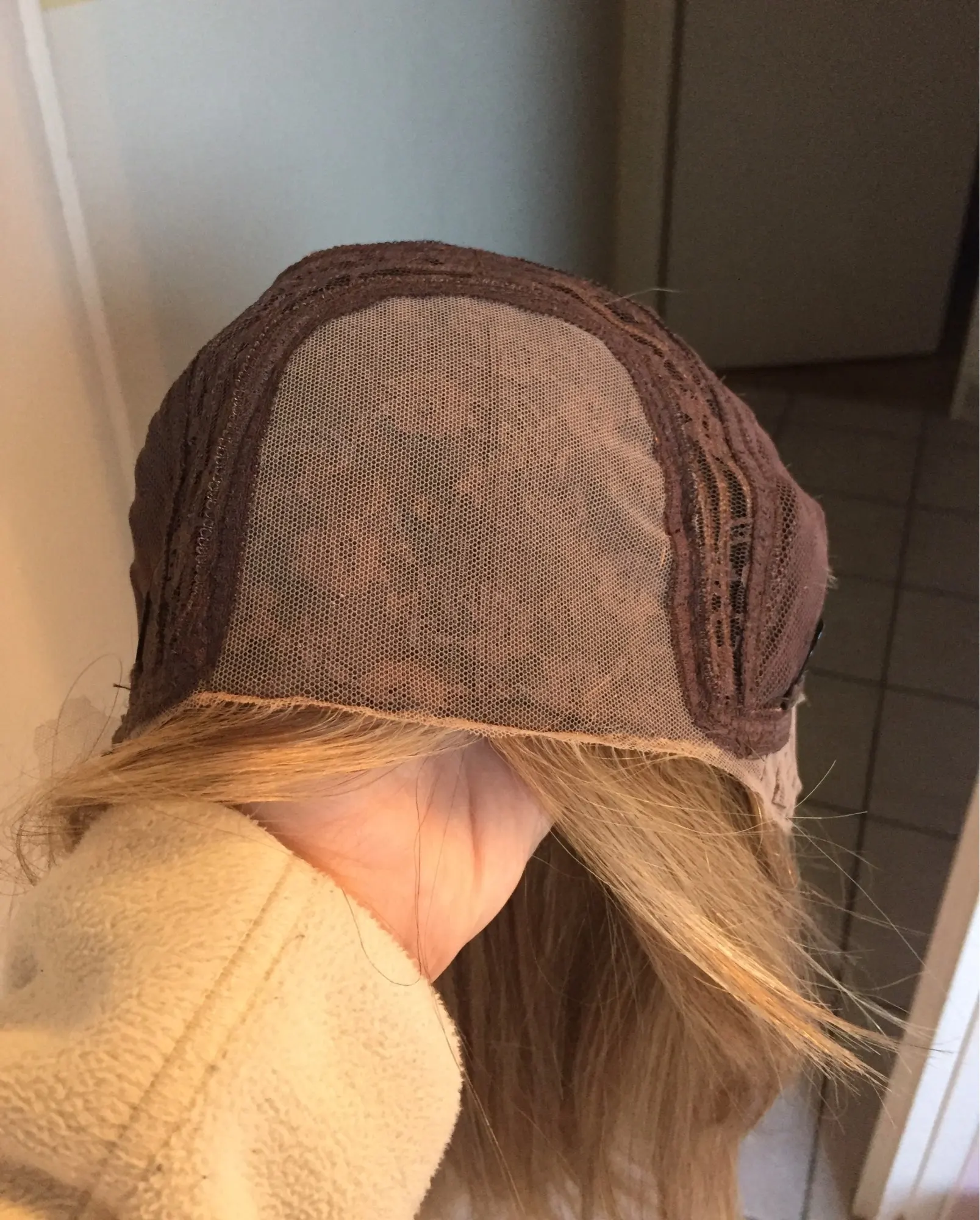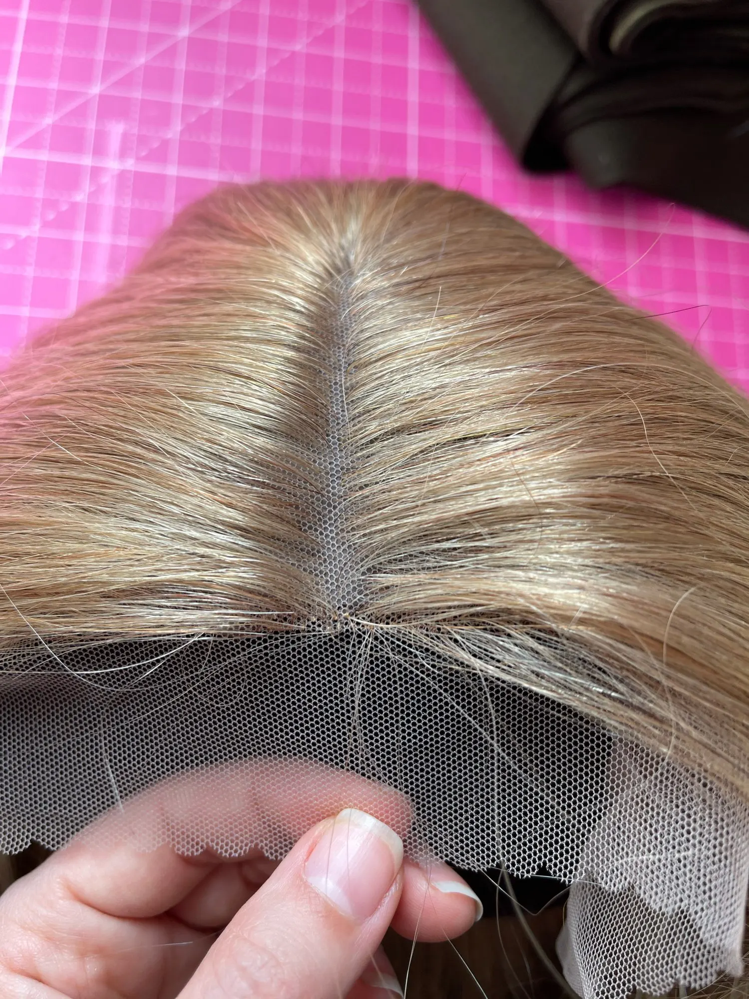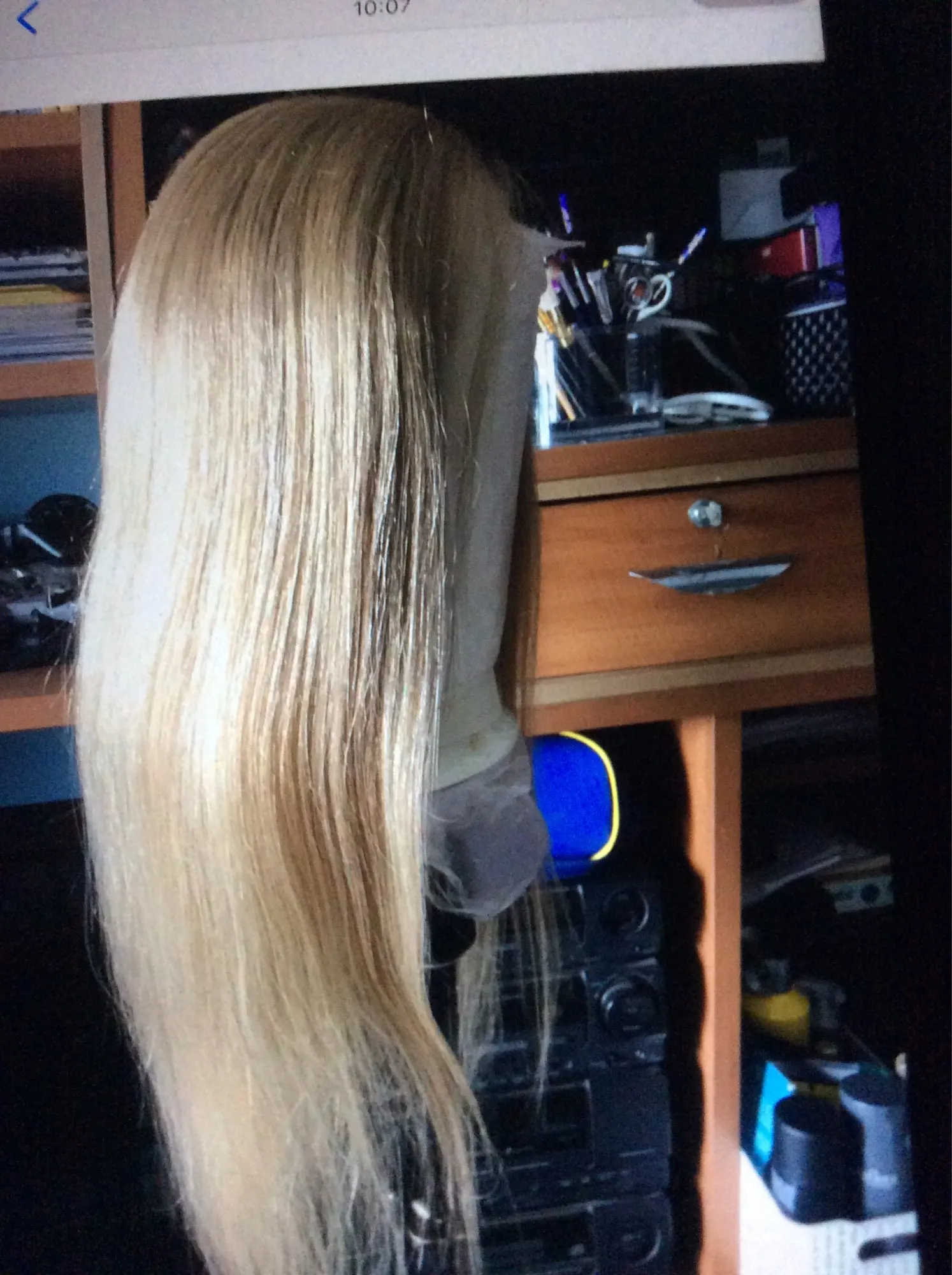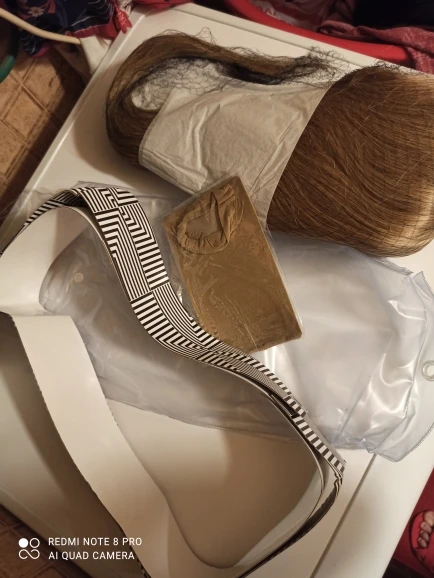 Парик плохо сделан. Полоса недостаточно поставляется в волосах. На стороне лица мы видим шляпу. Волосы на коричневой шляпе, так что это заметно. К минусам волосы очень мягкие, а цвет красивый, жаль, что я не могу его носить.