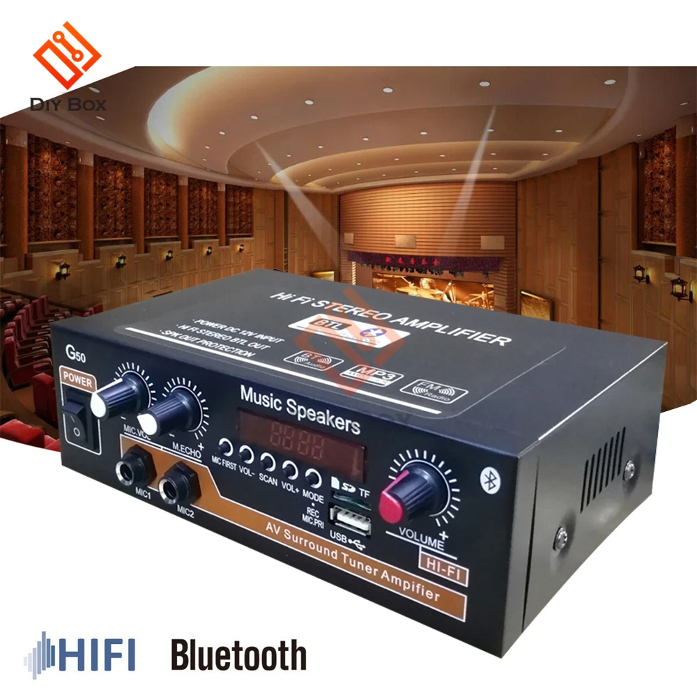 Модуль усилителя мощности G50 800 Вт Bluetooth 5,0, звуковое оборудование, колонки для домашней музыки в автомобиле, TF-карта, FM, U-диск, USB, 12 В, 110 В, 220 В