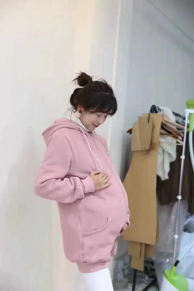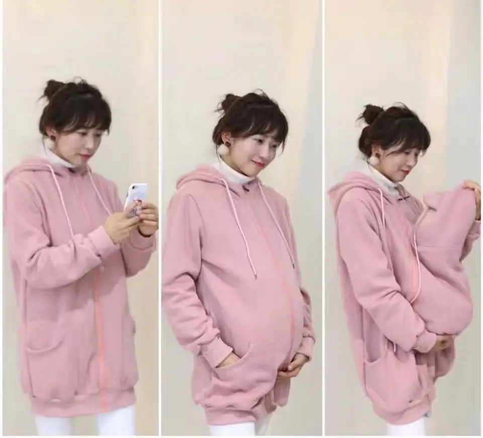 Женские толстовки с капюшоном, зимние многофункциональные толстовки с капюшоном-кенгуру на молнии, для беременных