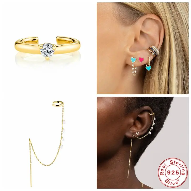 Aide 925 стерлингового серебра ухо клип простой бриллиант серьги-пряжкой блестящие C-Форма манжеты Серьги для женщин и девушек, Свадебная вечеринка украшения 1 шт.