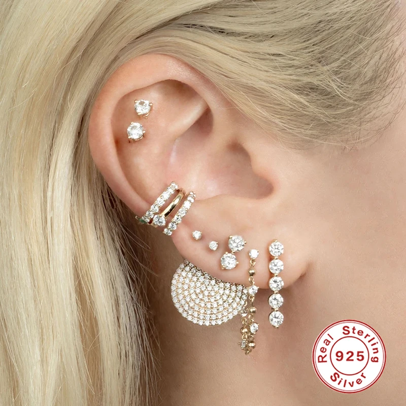 Женские серьги-клипсы Aide из стерлингового серебра 925 пробы с простой бриллиантовой пряжкой и блестящими c-образными манжетами для свадебной вечеринки, 1 шт.