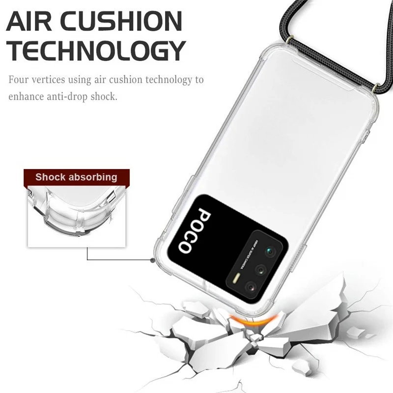 Прозрачный чехол для телефона с ремешком на ремешке для Xiaomi Mi Poco M3, подушка безопасности, противоударный силиконовый мягкий чехол из ТПУ для poco x3, Coque Fundas Capa