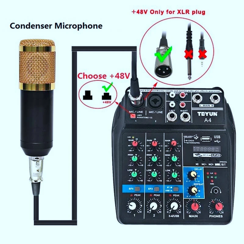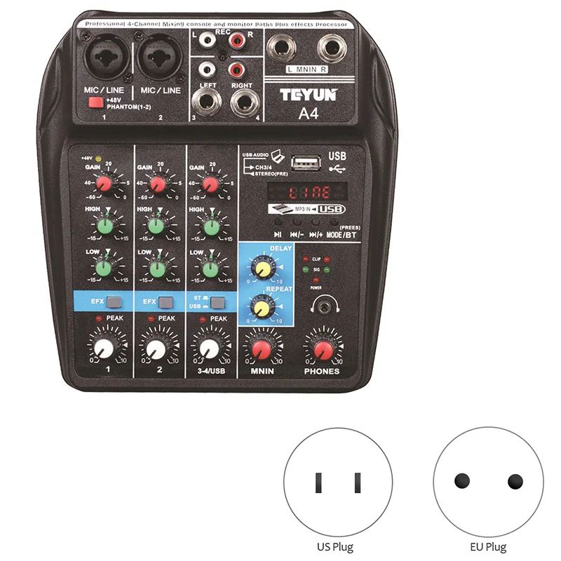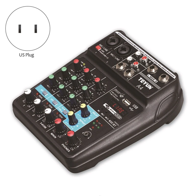 Teyun 4-канальный микшер открытый конференции, включающим в себя гарнитуру блютус и флеш-накопитель USB реверберации o микрофона караоке в прямом эфире с звуковая карта