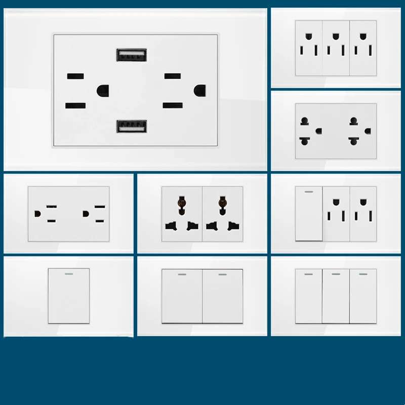 250 в американский стандарт 118 мм Бытовая белая стеклянная панель Расширенный выключатель питания серии
