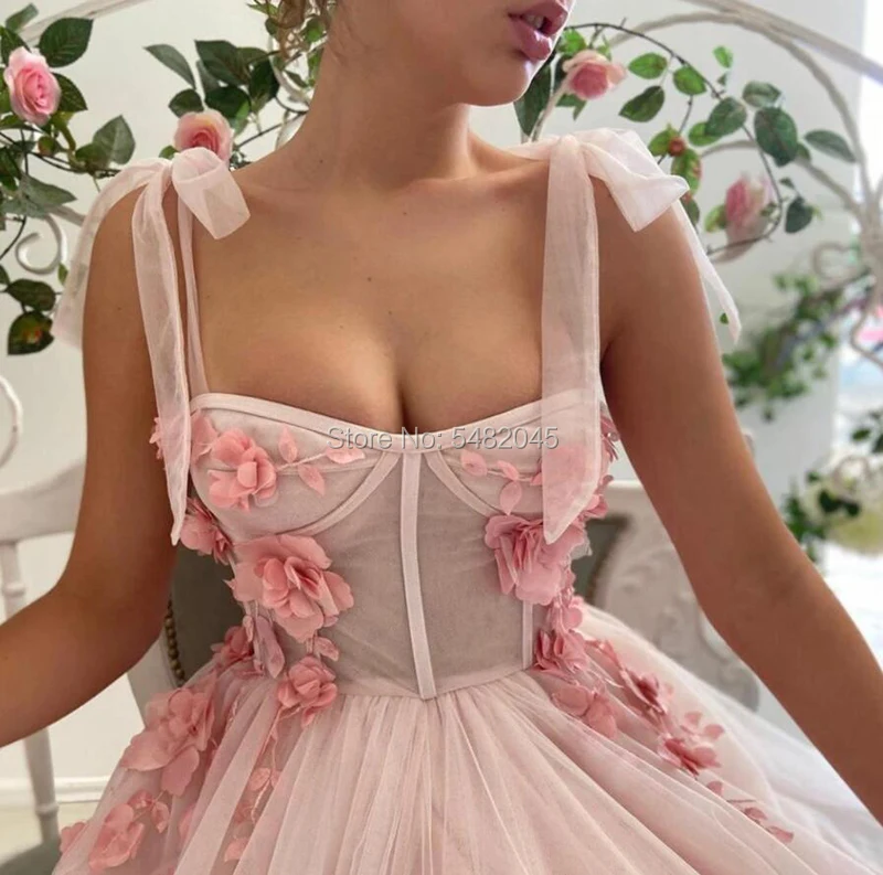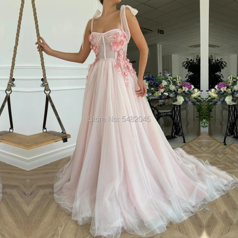LORIE розовое сказочное платье для выпускного с аппликациями с объемными цветами тонкие лямки Тюль вечернее платье знаменитости для выпускного вечера 2021