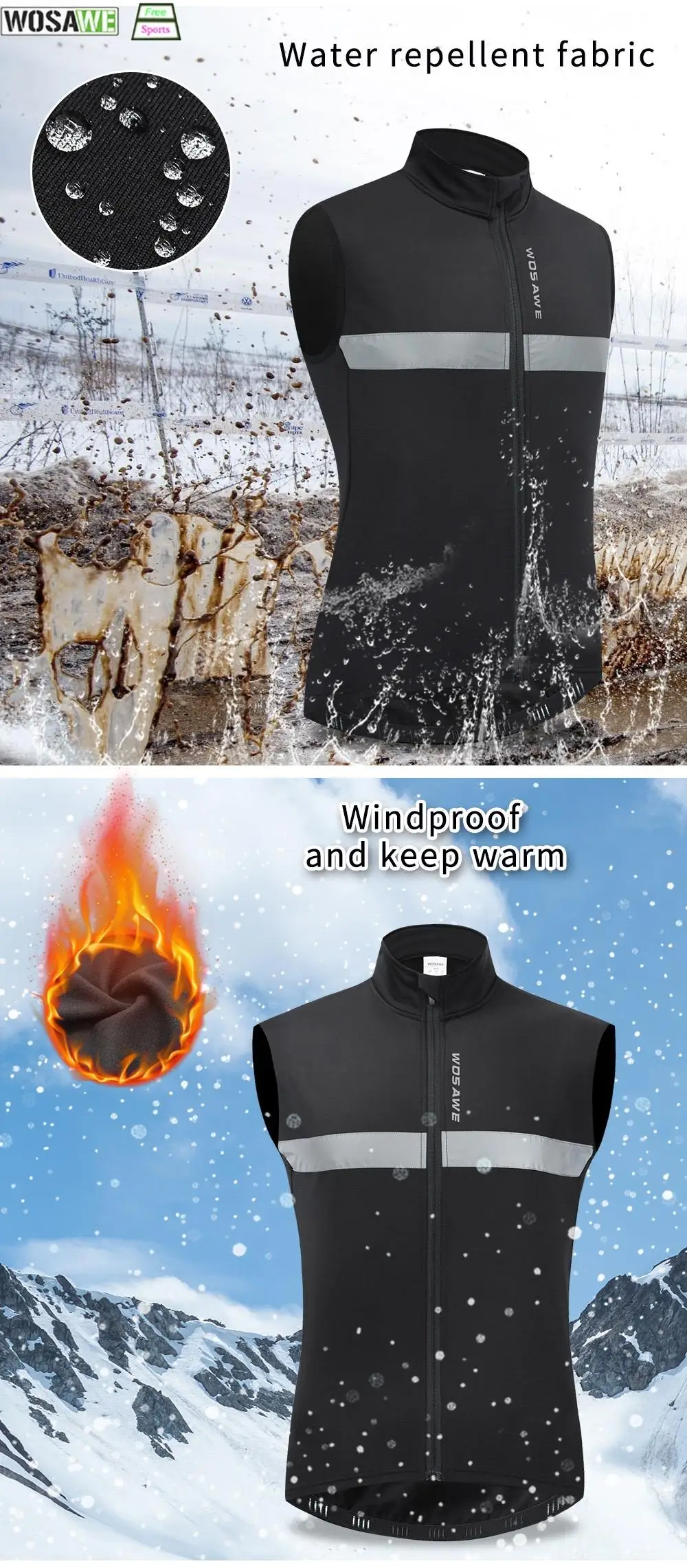 Мужской велосипедный теплый жилет WOSAWE, зимняя водоотталкивающая Светоотражающая ветрозащитная Спортивная одежда для гольфа, лыжного спорта, одежда без рукавов для горного велосипеда