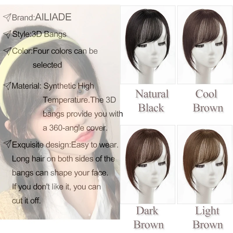 AILIADE синтетический 3D градиент челка невидимая сменный зажим в лучшие волосы парик с бахромой сбоку воздушные челки Для женщин натуральные шиньоны