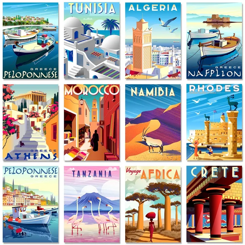 Алмазная 5D живопись с мотивом Греции, Африки и города, вышивка крестиком, мозаика, вышивка из Европы, Марокко, украшение для рукоделия